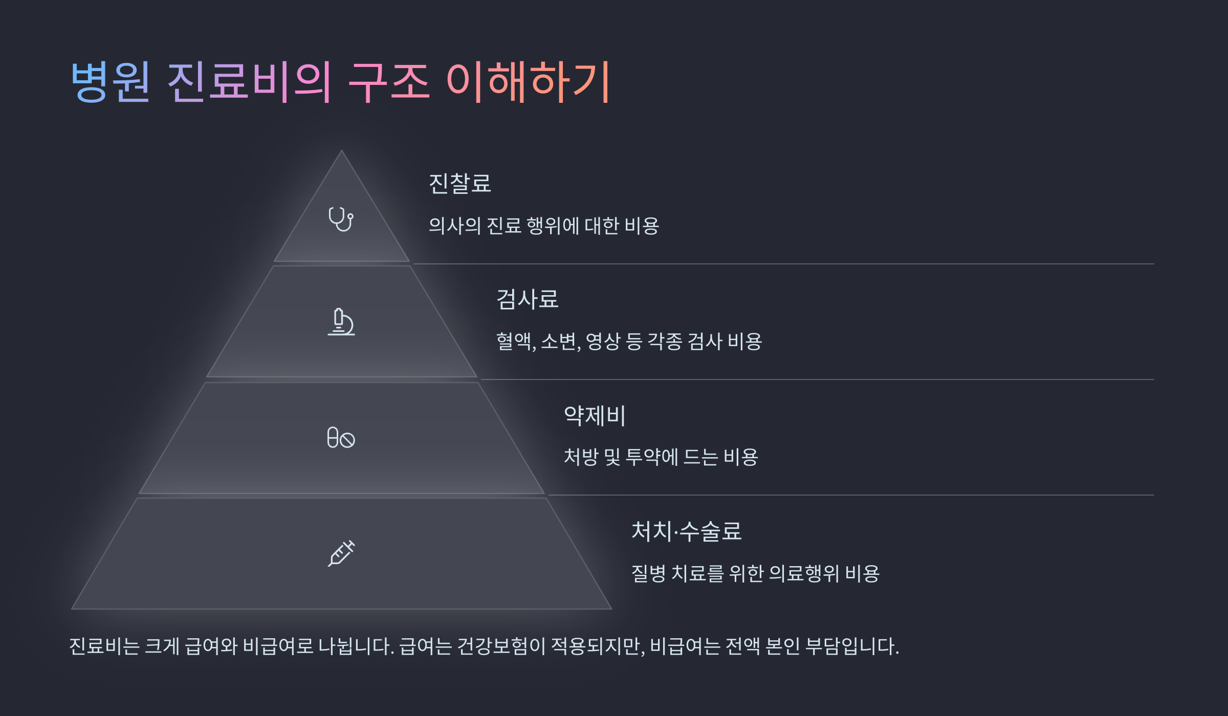 의료비 절감을 위해선 병원비 구조를 이해하고, 급여·비급여 항목을 구분하며, 병원 선택 시 신중함이 필요해요. 정보가 곧 돈이 되는 시대니까요! 😎