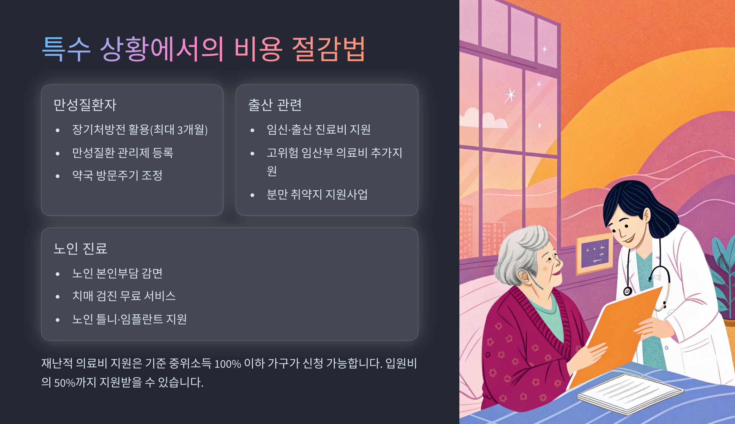 ‘아이돌봄 의료지원’, ‘산모신생아 건강관리지원’, ‘치매안심센터’ 같은 특정 대상군 지원도 꼭 활용해야 해요. 특히 임산부, 신생아, 노인은 의료비 지원 범위가 넓어서 여러 혜택을 누릴 수 있답니다. 지자체 홈페이지에서 쉽게 신청 가능하니 바로 체크해 보세요! 👶👵