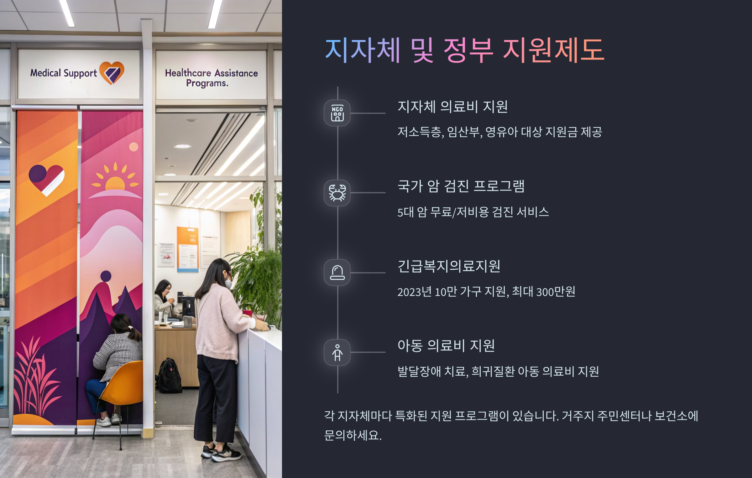 지자체 지원 제도는 지역마다 다양해서, 자신이 사는 곳의 복지포털이나 주민센터에서 꼭 확인해보는 게 좋아요. 생각보다 ‘알아보는 것’만으로도 병원비 걱정이 확 줄어들 수 있어요. 💻