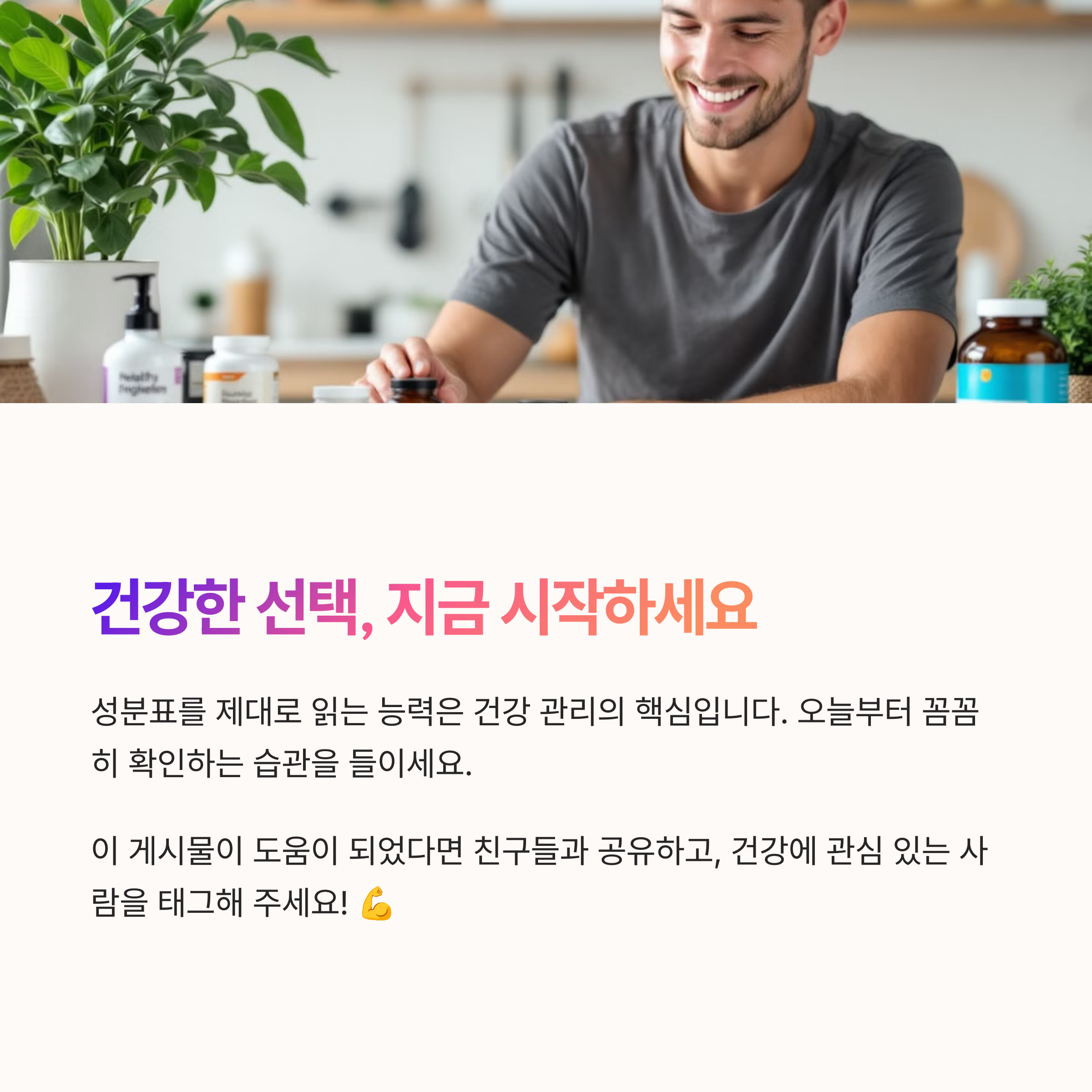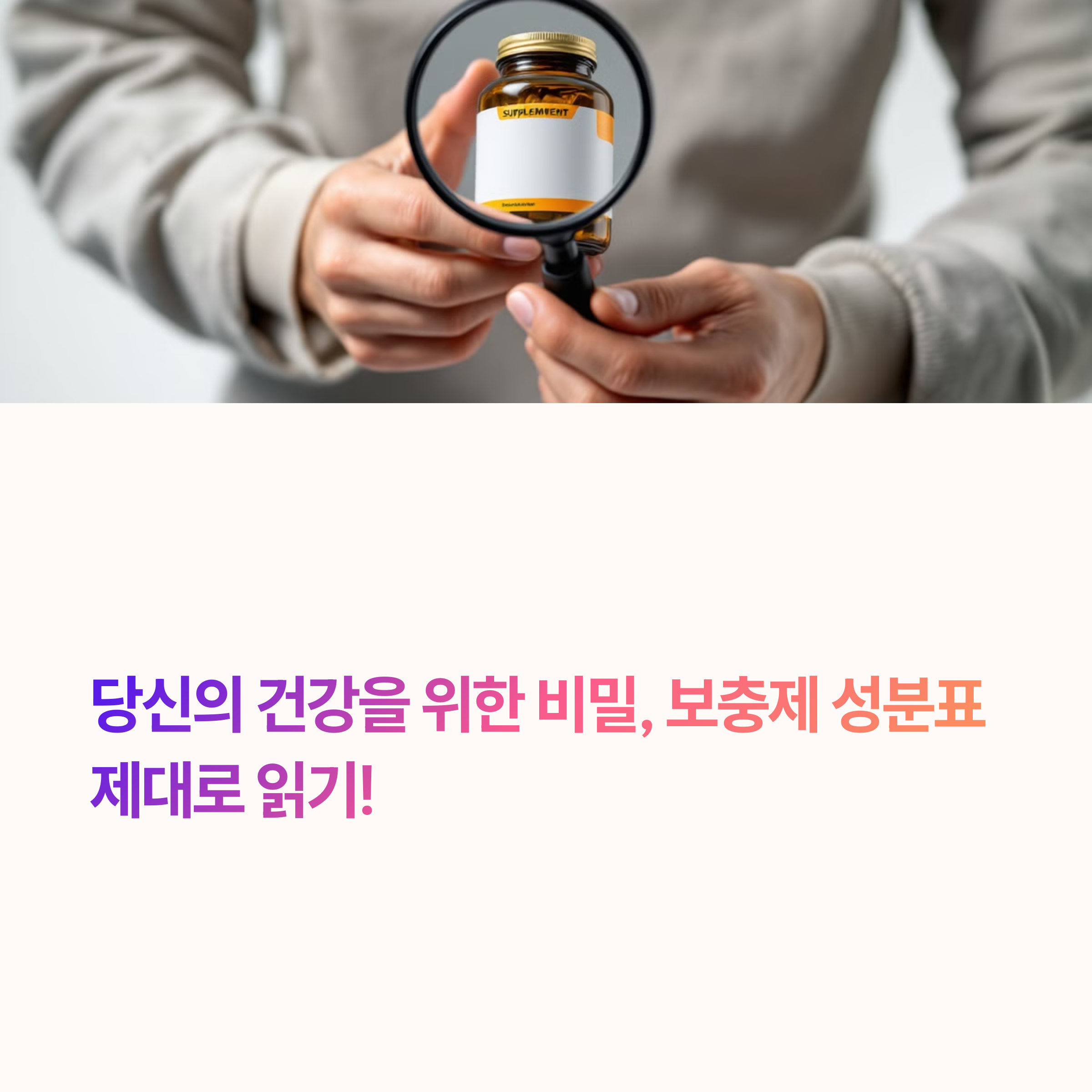 보충제는 우리의 건강을 보조하는 중요한 요소이지만, 잘못 선택하면 오히려 건강에 해가 될 수도 있습니다. 따라서, 성분표를 올바르게 해석하는 것이 중요하며, **필수 영양소, 첨가물, 인증 마크** 등을 꼼꼼히 확인해야 합니다. 건강한 라이프스타일을 위해, 믿을 수 있는 제품을 신중하게 선택하는 습관을 들여보세요!