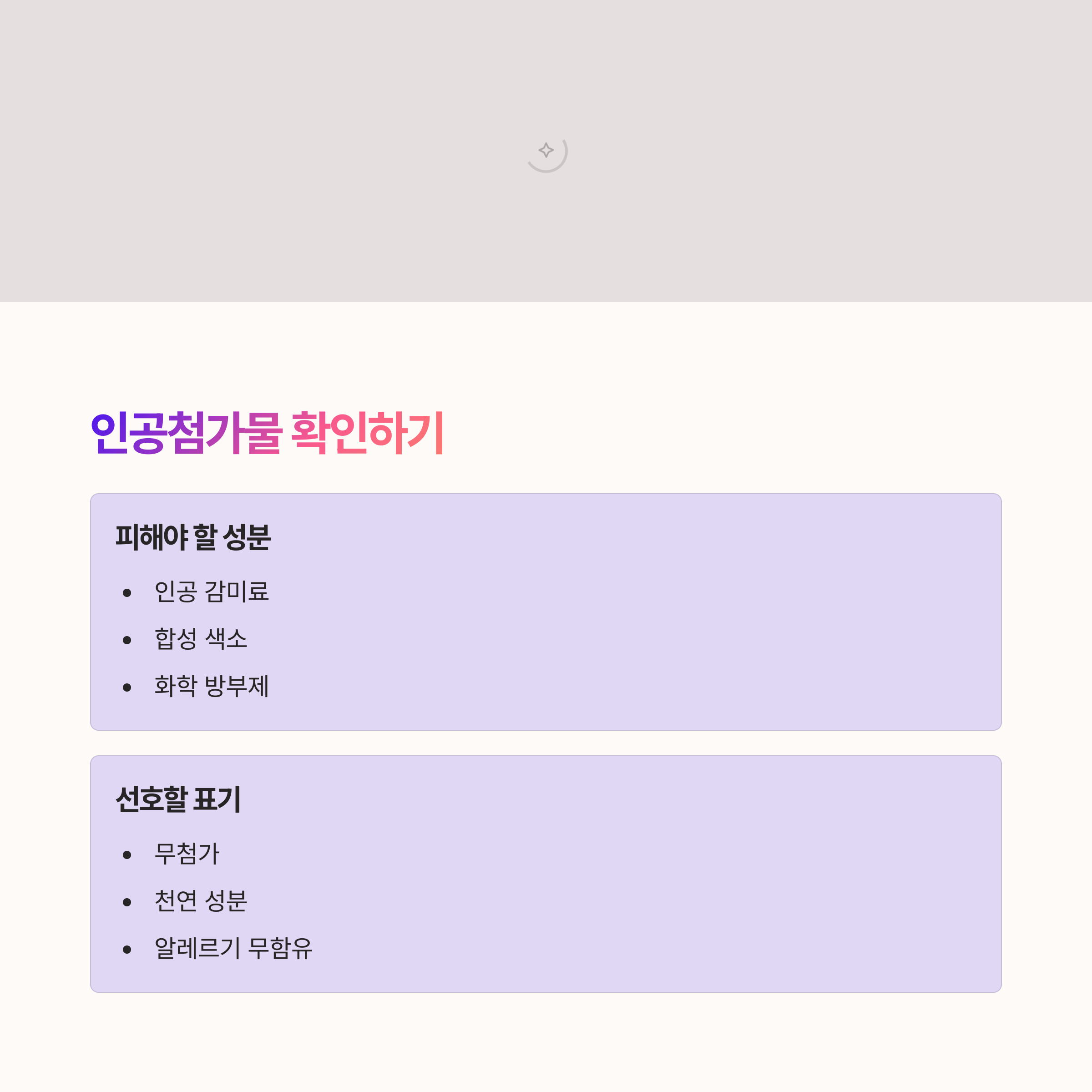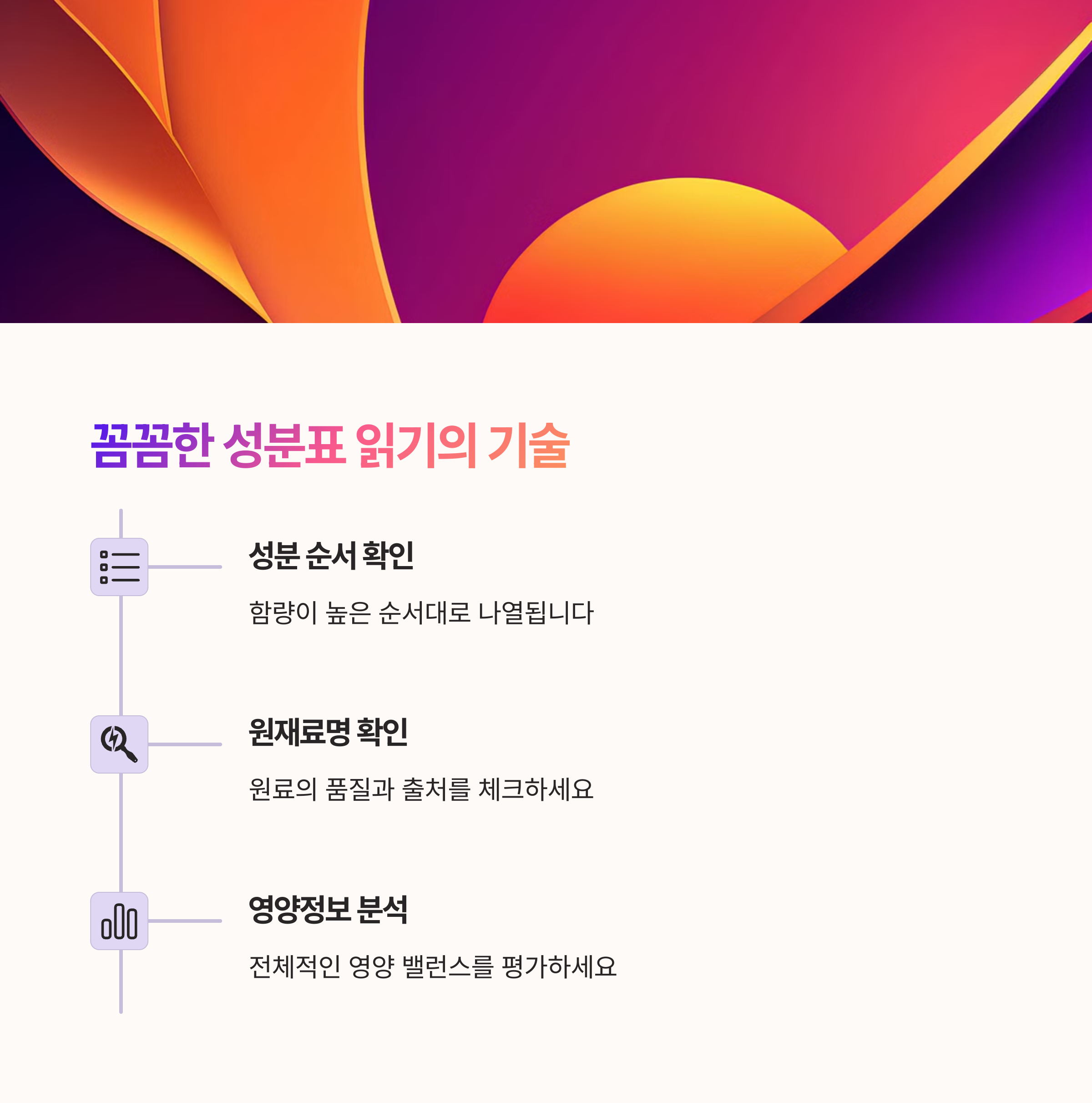 | 첨가물 | 인공색소, 감미료 등의 불필요한 성분을 피하세요. |