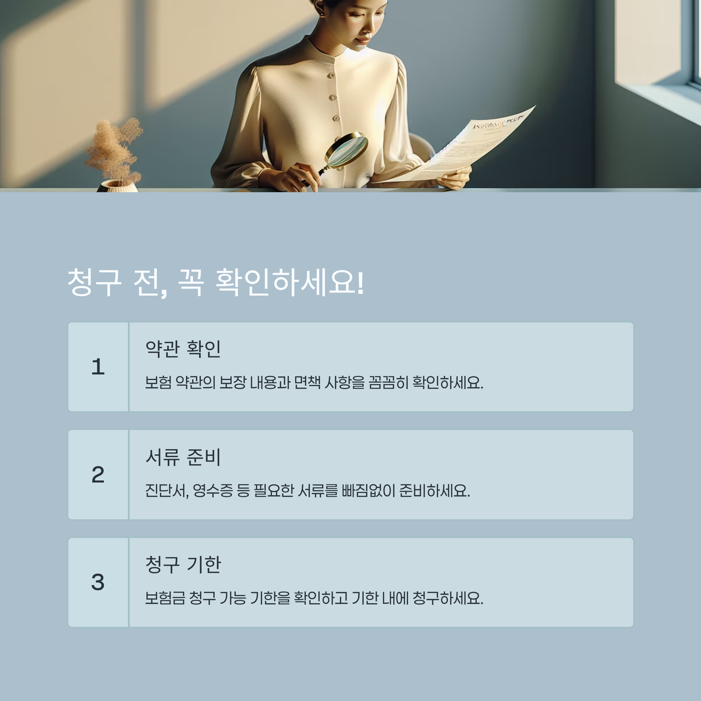 꼼꼼한 사전 준비는 보험금 청구의 성공률을 높여줍니다. 📄