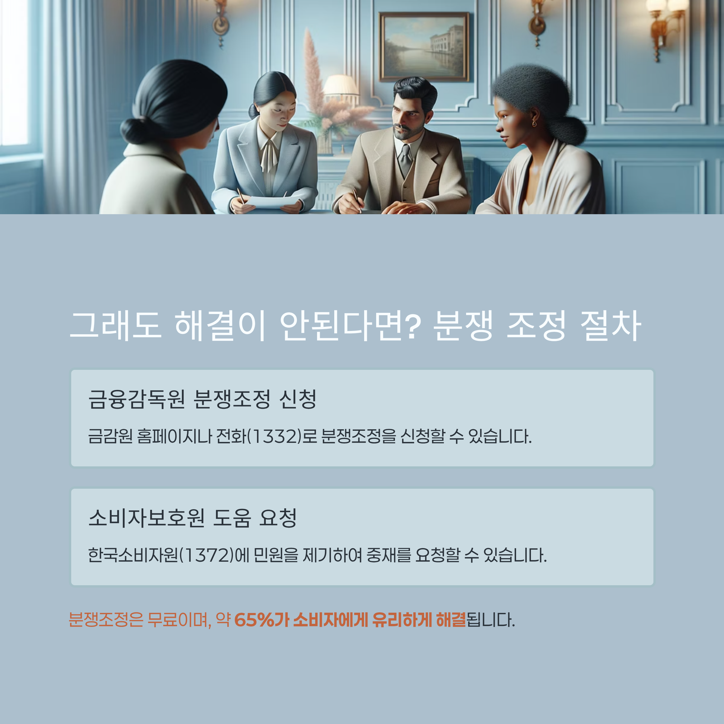 - 신청 방법: 금융감독원 홈페이지(온라인 민원), 전화 상담(국번 없이 1332), 방문 접수.
