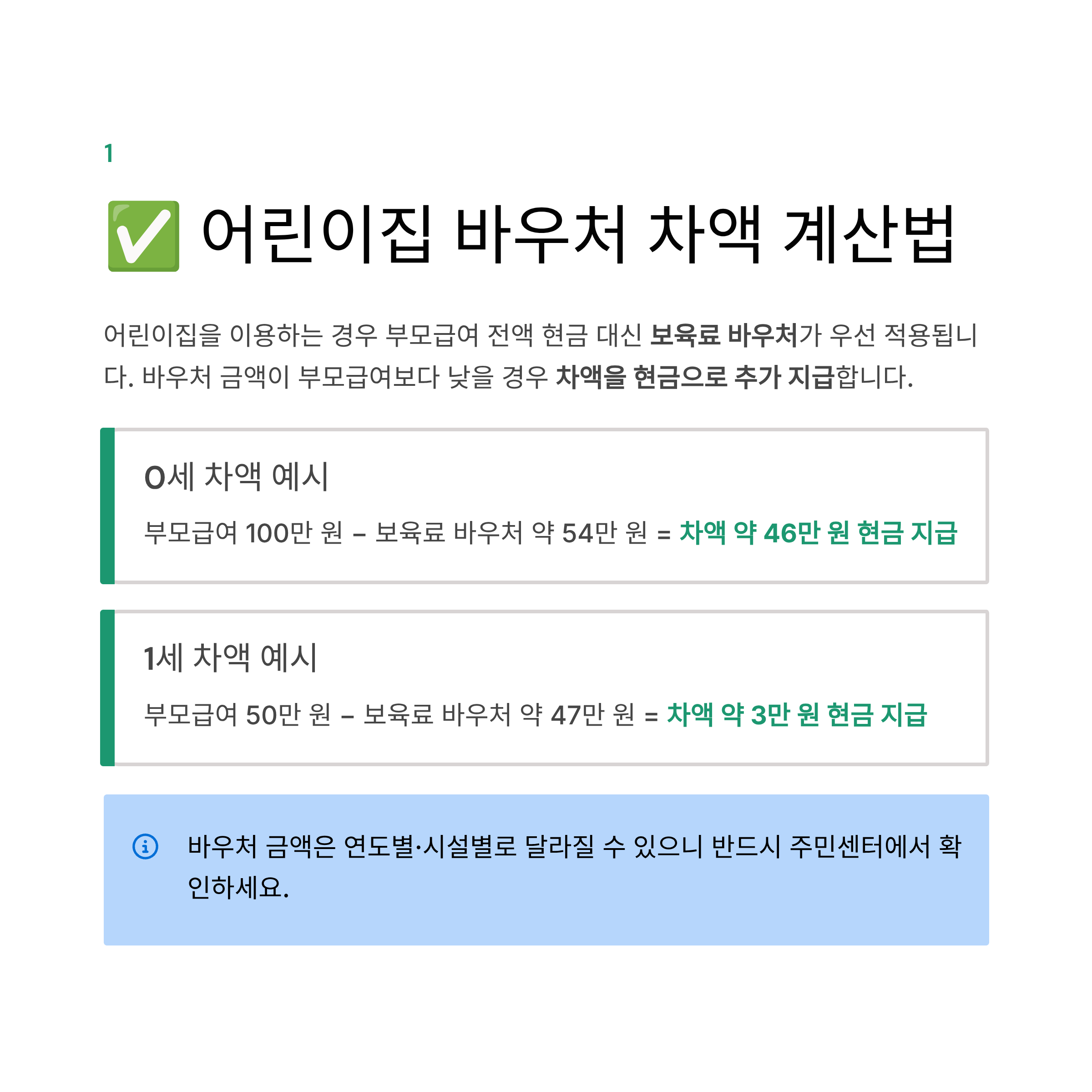 ✅ 어린이집 이용 시 바우처 차액 계산법
