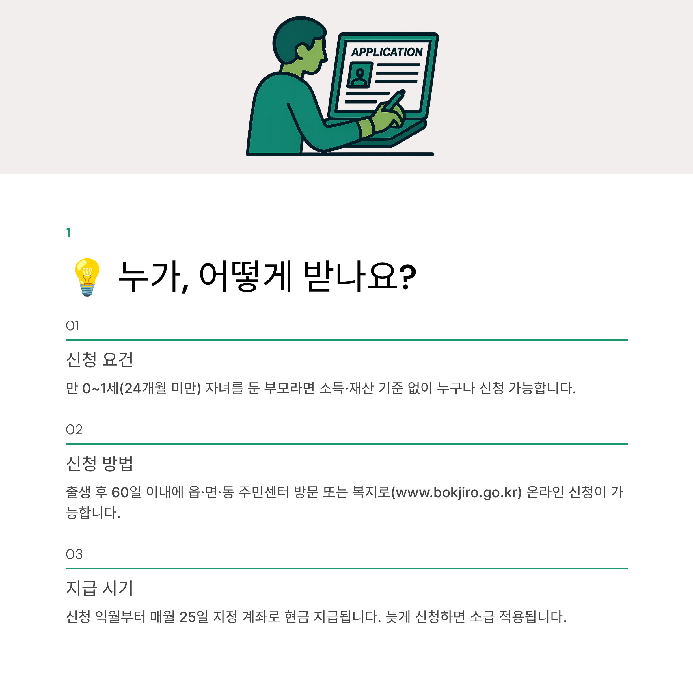 *매달 25일, 부모 또는 아동 명의의 계좌로 현금 입금됩니다. 📈