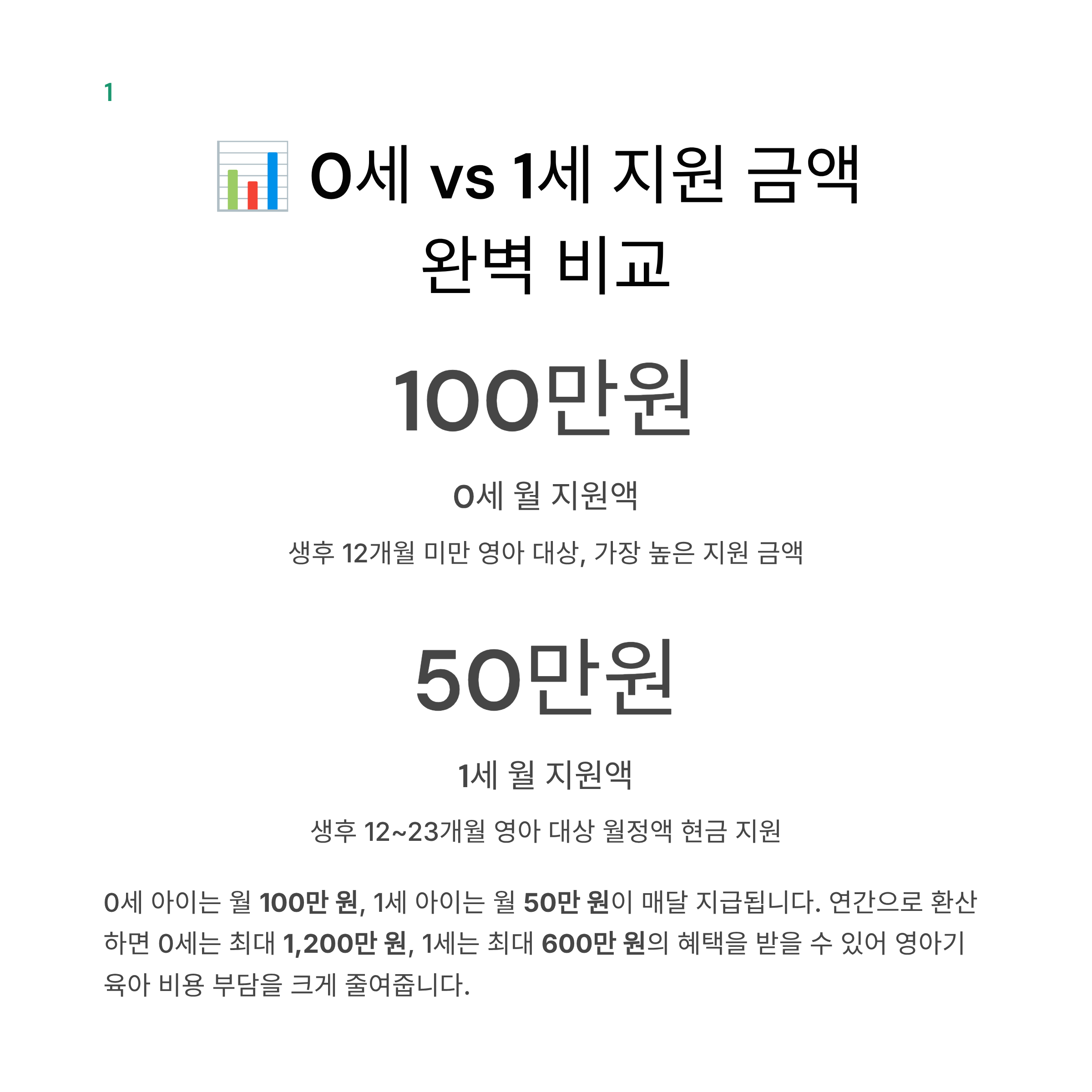 📊 연령별 지원 금액 (0세 vs 1세 완벽 비교)