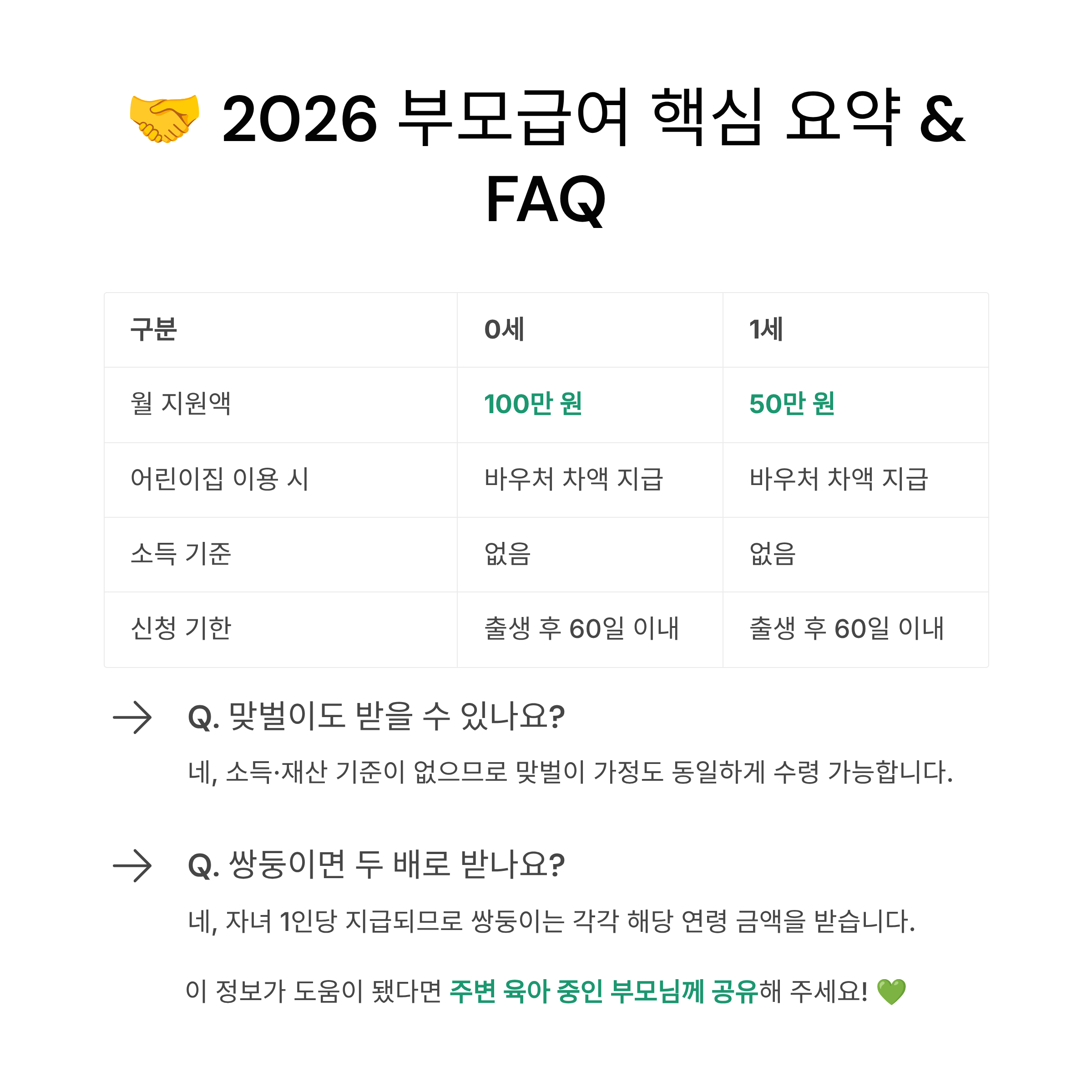🤝 2026 부모급여 핵심 요약표