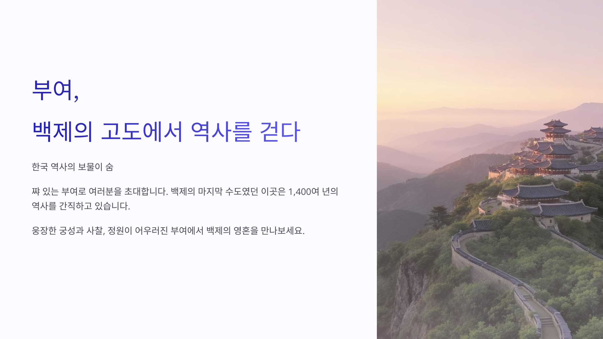 부여는 백제의 찬란한 역사와 문화, 자연이 어우러진 대한민국 대표 역사 여행지입니다. 부소산성에서 백마강을 바라보고, 정림사지 오층석탑 앞에서 천오백 년 전의 숨결을 느끼며, 궁남지의 연꽃길을 걷는 산책은 그 자체로 시간 여행입니다. 유네스코 세계유산, 국가유산 야행, 다양한 체험과 맛집까지—부여에서의 하루는 역사와 감동, 그리고 휴식으로 가득합니다.