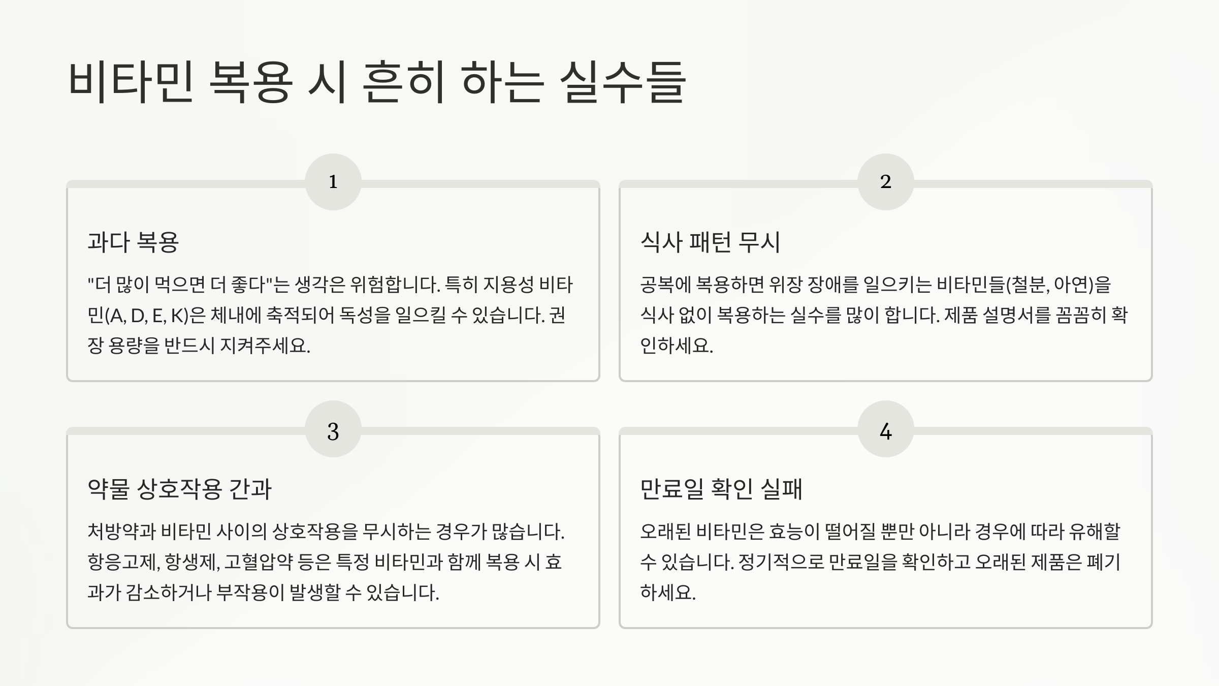 다음 섹션에서는 비타민 복용 시 초보자들이 흔히 저지르는 '실수들'을 짚어드릴게요. 현명한 복용을 위해 꼭 알아두세요! ⚠️