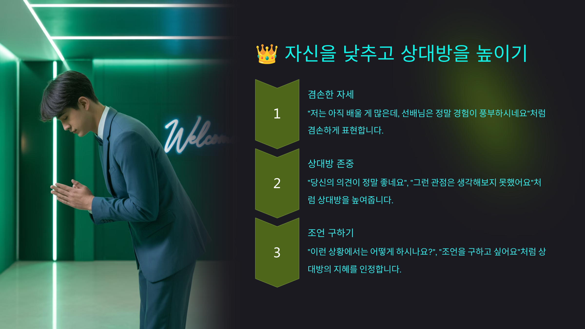 👑 자신을 낮추고 상대방을 높이기