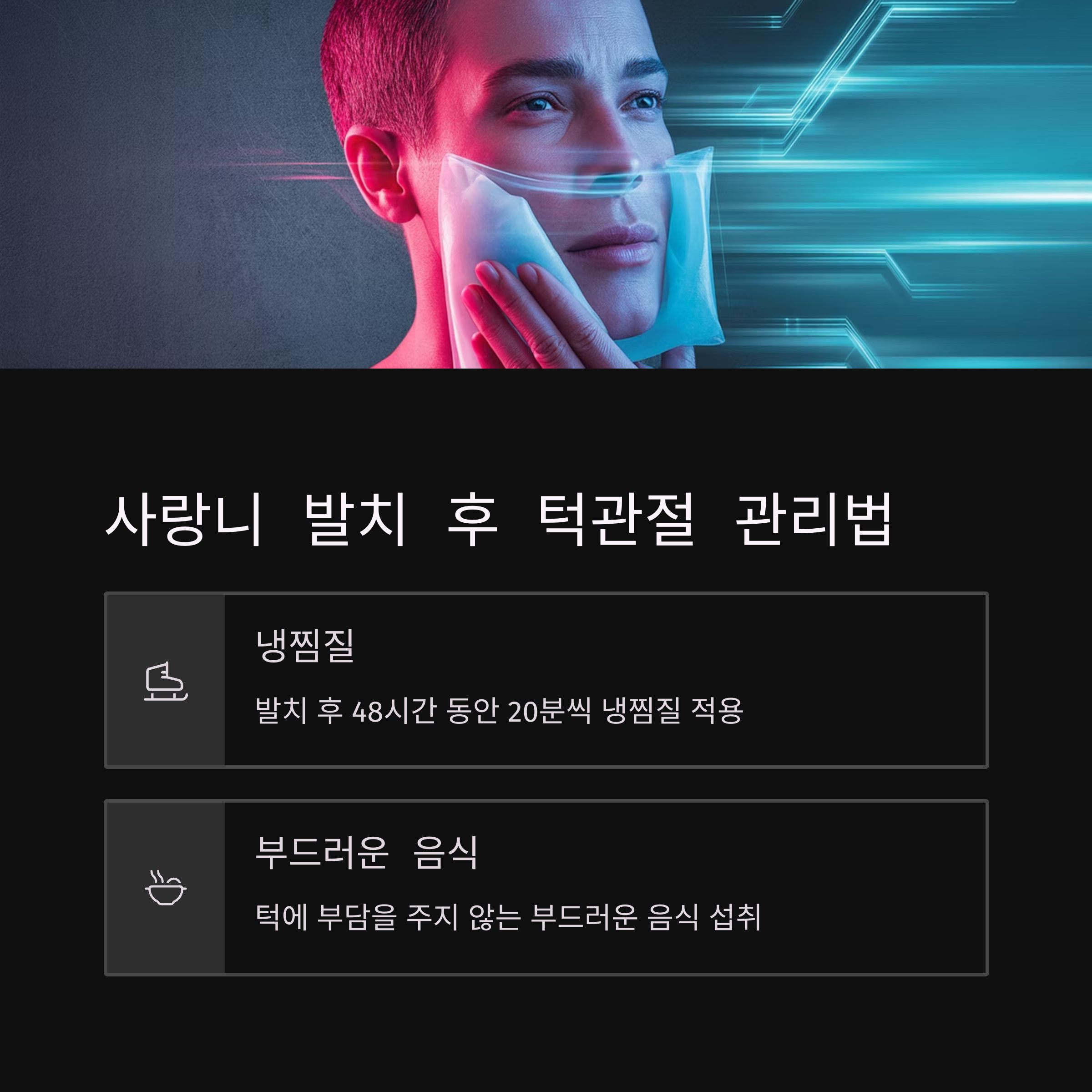 사랑니 발치 후에는 턱관절에 무리가 가지 않도록 세심한 관리가 필요해요. 다음 관리법들을 실천하여 통증을 줄이고 빠른 회복을 도모하세요. 🩹