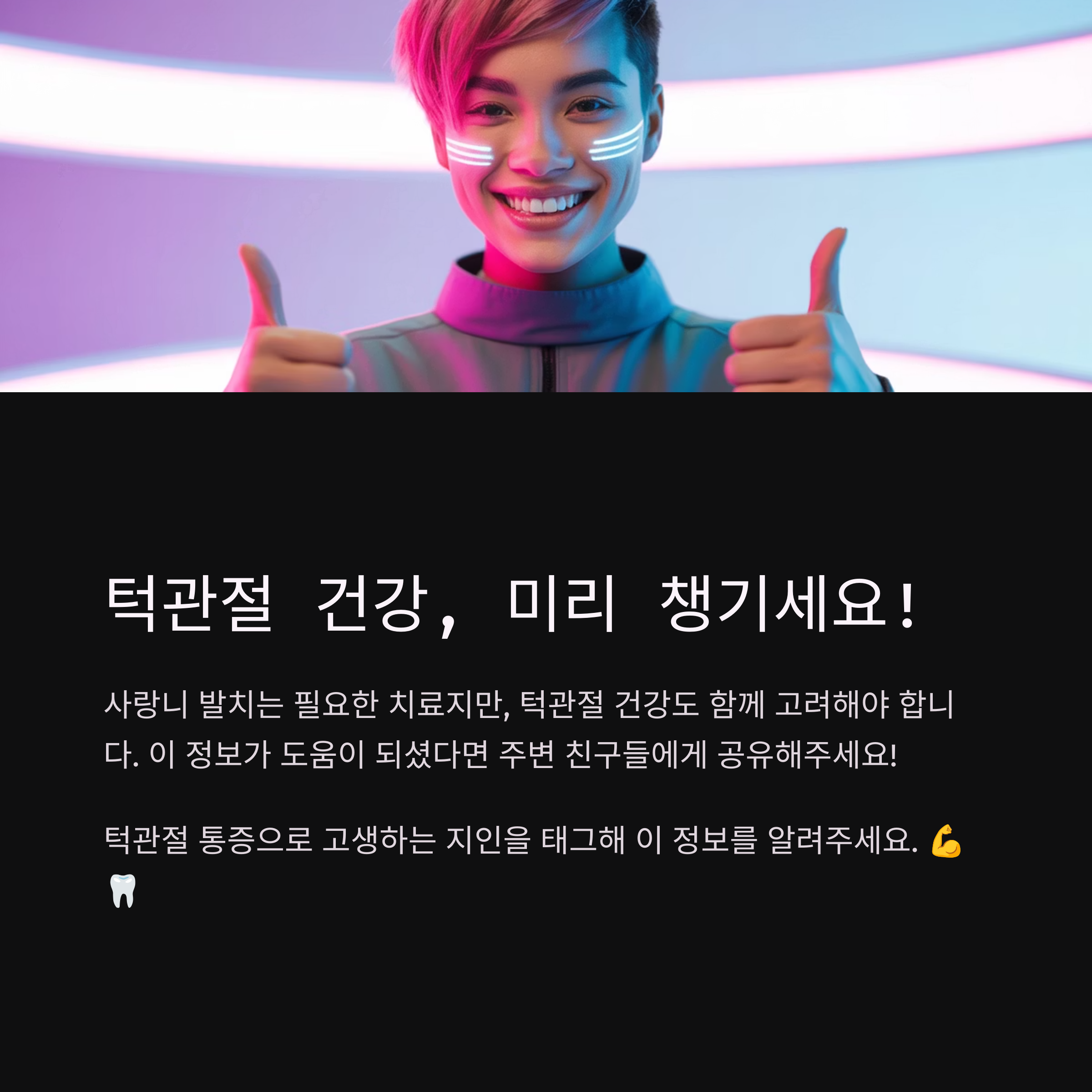 턱관절 문제는 초기에 잡는 것이 중요해요. 방치하면 만성 통증과 더 큰 문제로 이어질 수 있으니, 주저하지 말고 전문가와 상담하세요! 💖