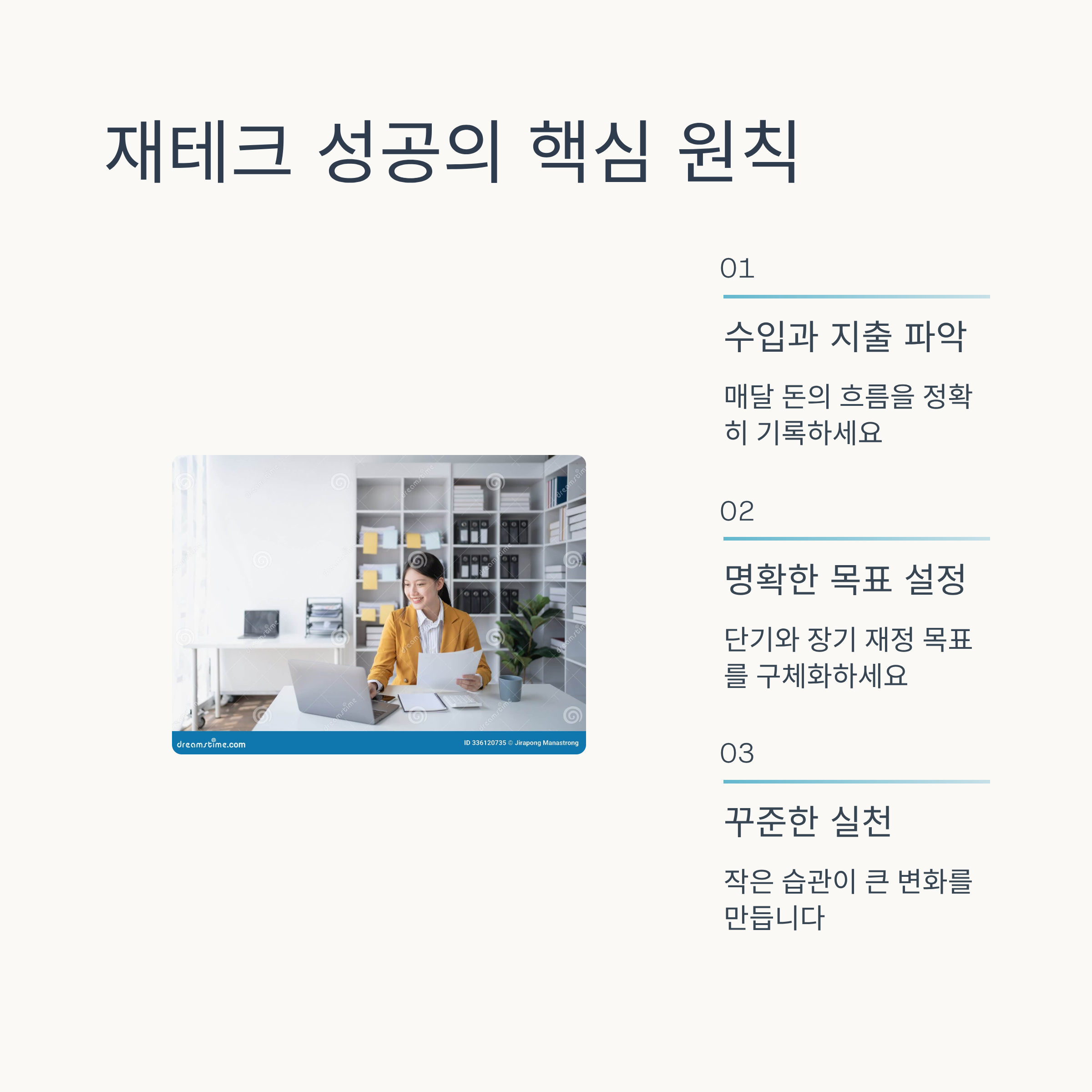 사회초년생 재테크의 성공은 복잡한 투자 기법보다는, 다음 핵심 원칙들을 꾸준히 지키는 데서 시작됩니다.