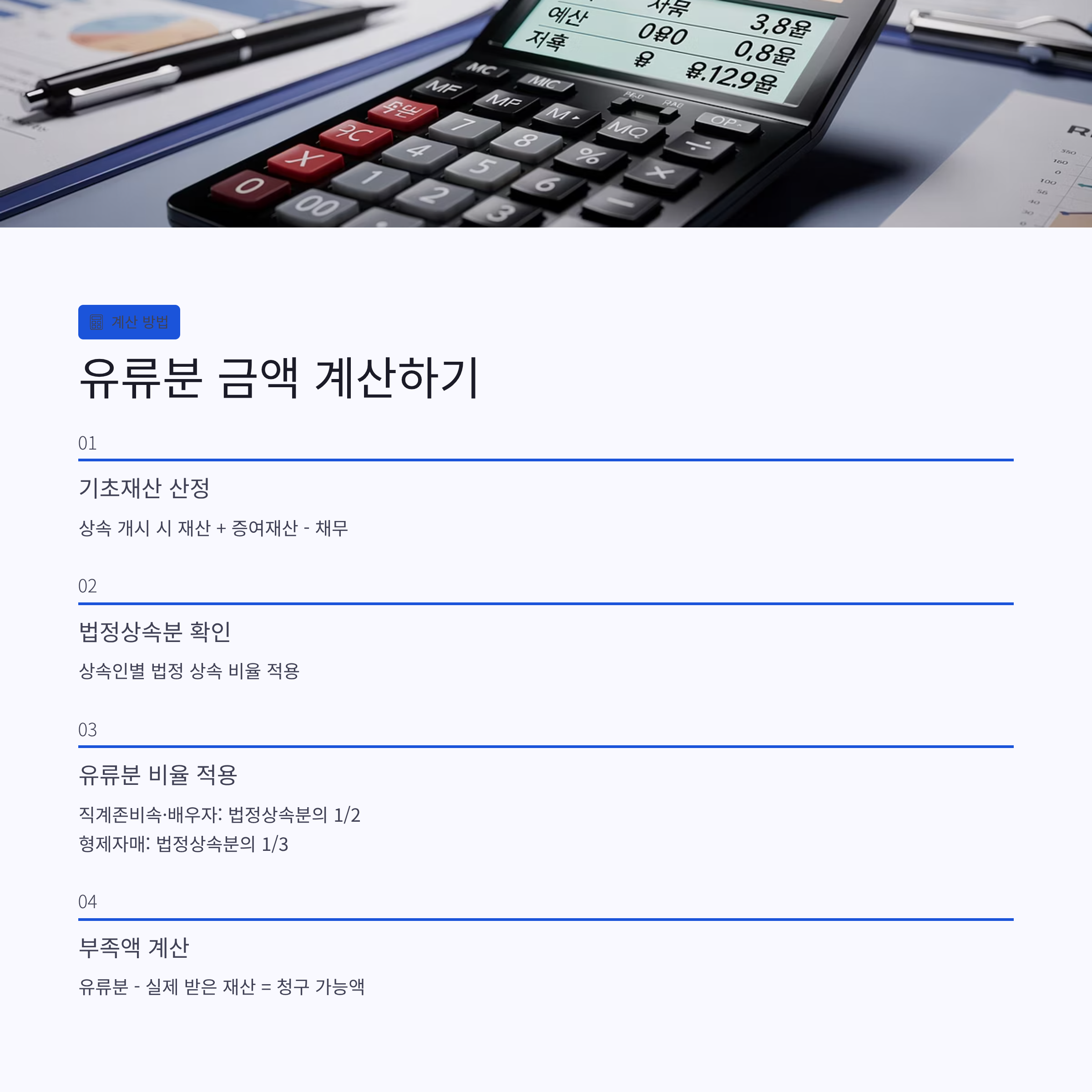유류분 금액은 단순히 법정 상속분의 일정 비율을 적용하는 것이 아니라, 몇 가지 단계를 거쳐 복잡하게 계산됩니다. 정확한 계산을 위해서는 전문 변호사나 법무사의 도움이 필수적입니다.