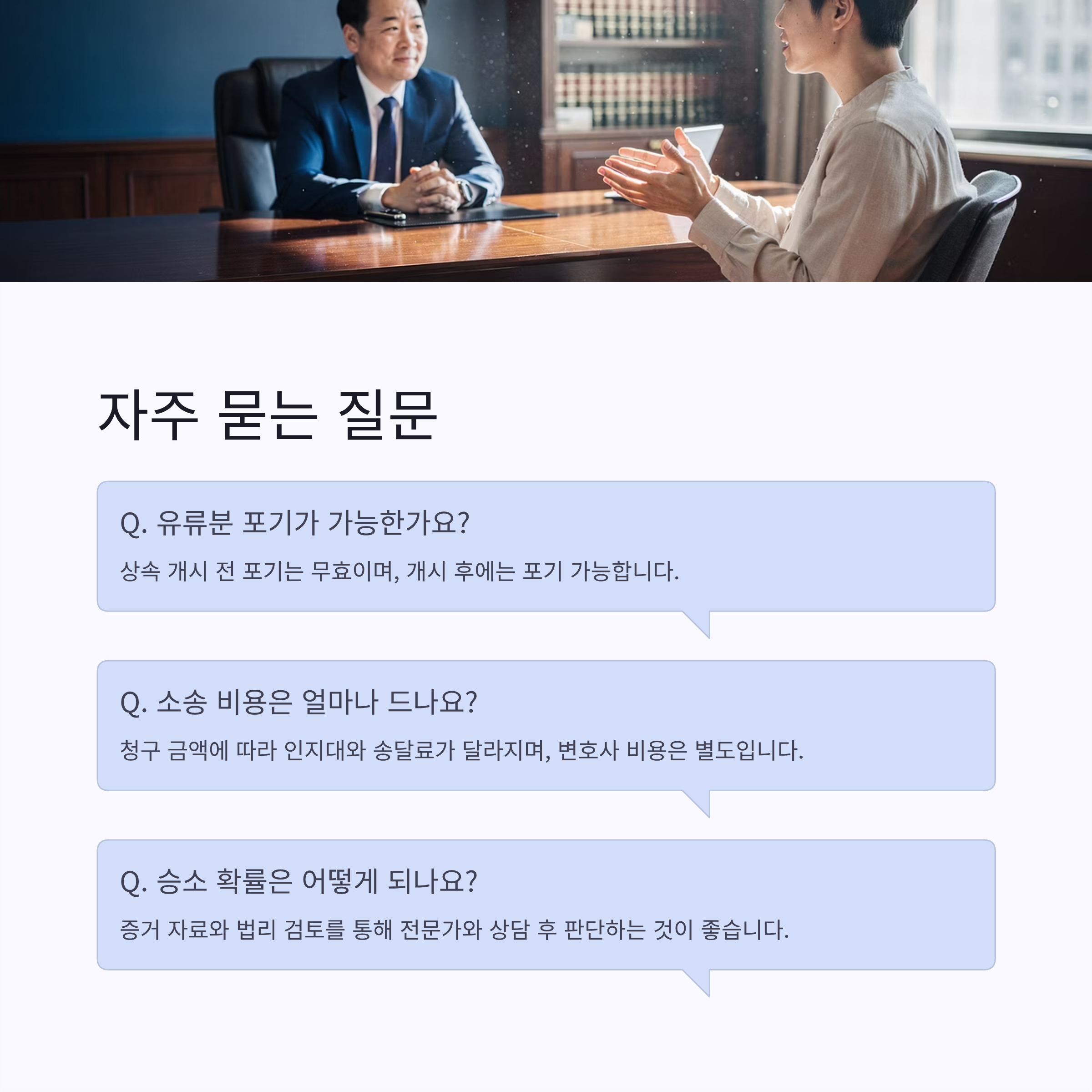 - 상속인 권리 보호: 가족 구성원의 생계 안정과 공평한 상속이라는 법적 가치를 실현할 수 있습니다.