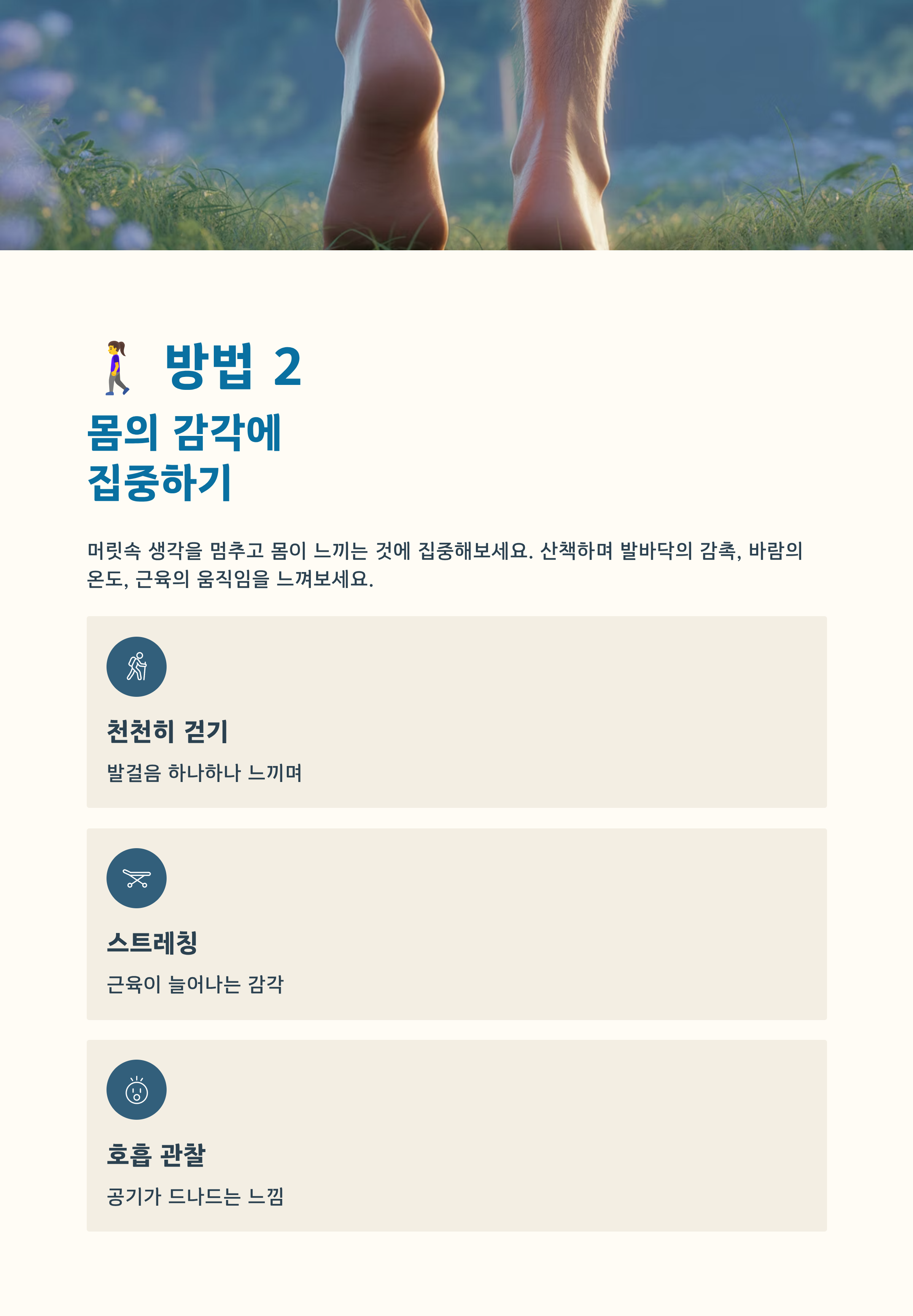🚶♀️ 의외의 방법 2: 몸의 감각에 집중하기 (신체 활동)