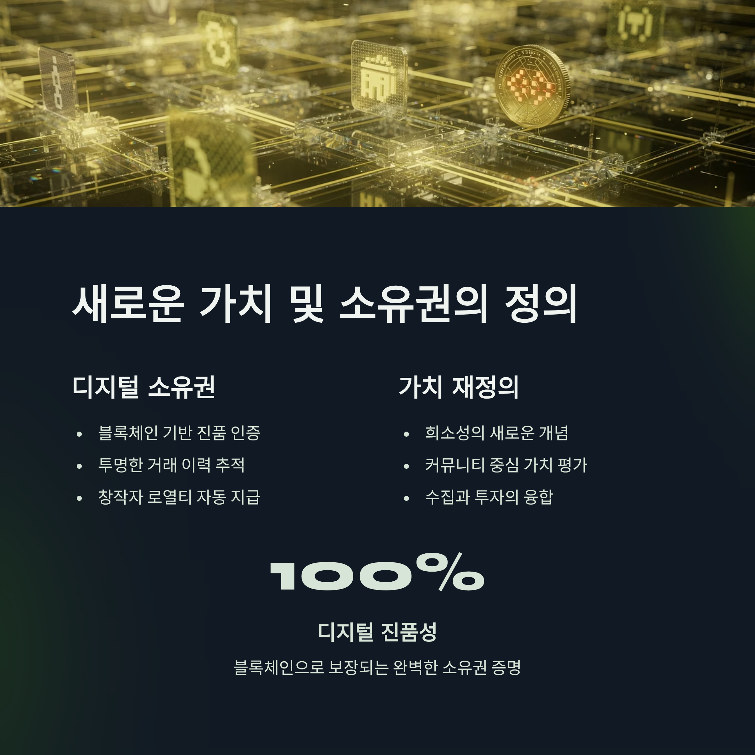 - 인증 및 투명성 강화: 블록체인 기반의 NFT가 소유권을 증명하고, AI가 디지털 서명 및 패턴을 분석하여 작품의 진위 여부와 복제품 여부를 검증하는 데 도움을 주어 시장의 신뢰도를 높입니다.