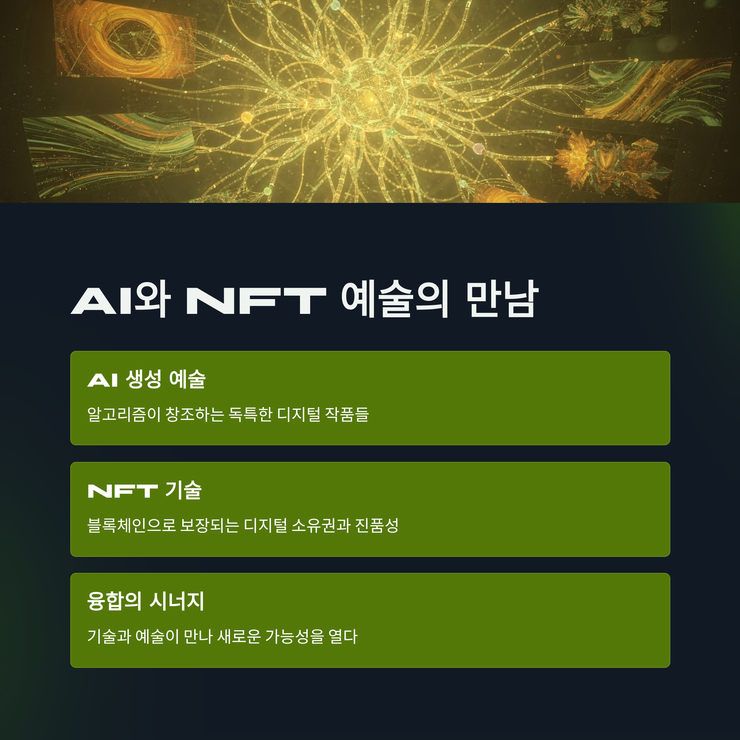 생성형 AI는 NFT 예술 시장의 일시적인 유행이 아닌, 장기적인 구조 변화를 이끄는 핵심 동력입니다. 예술가들은 AI를 새로운 표현 수단으로 받아들이고, 수집가들은 기술적 희소성이 더해진 작품에 주목하게 될 것입니다.