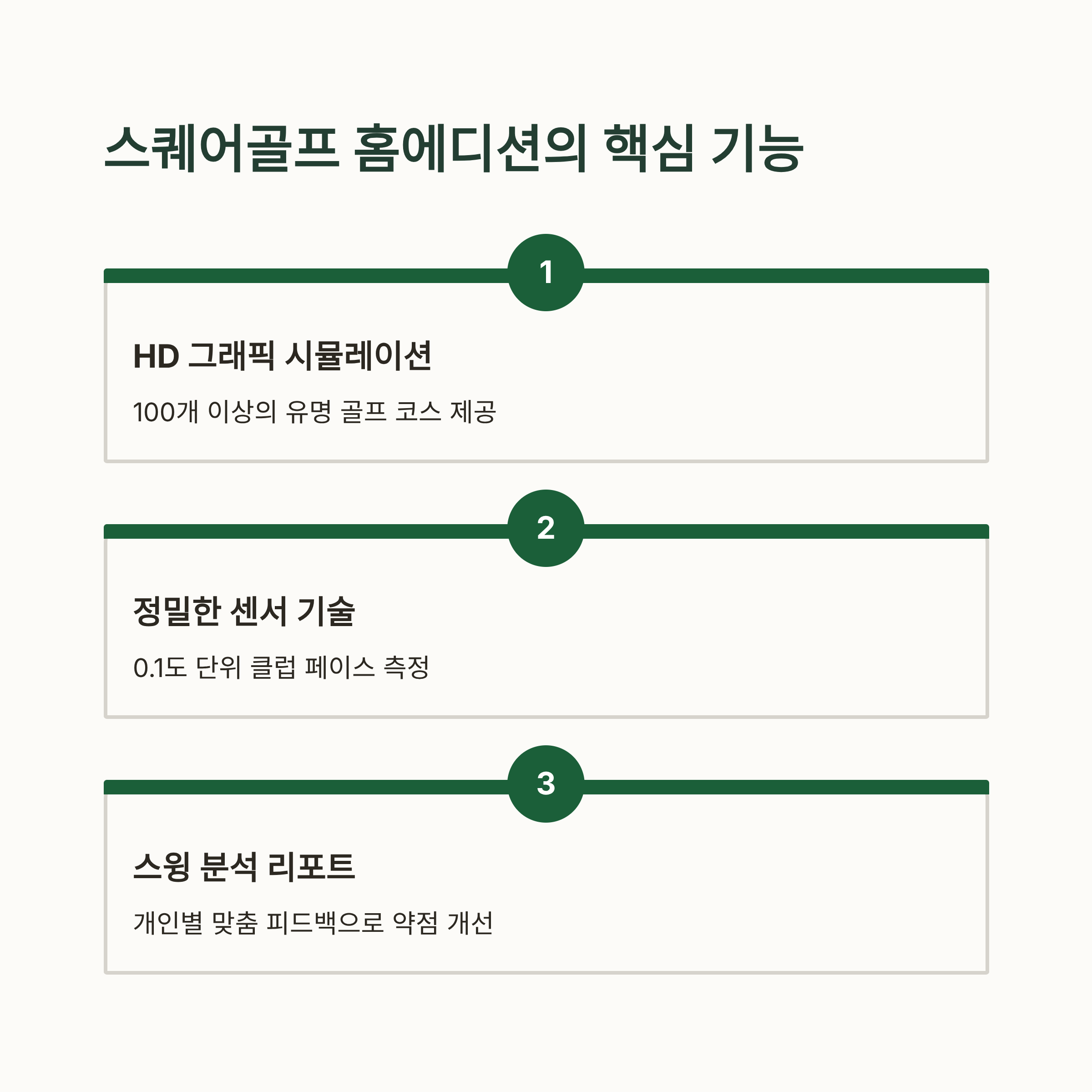 다음으로는 스퀘어골프 홈에디션의 '핵심 기능'들을 자세히 알아볼게요. 무엇이 당신의 골프 실력을 한 단계 업그레이드 시켜줄까요? 🚀