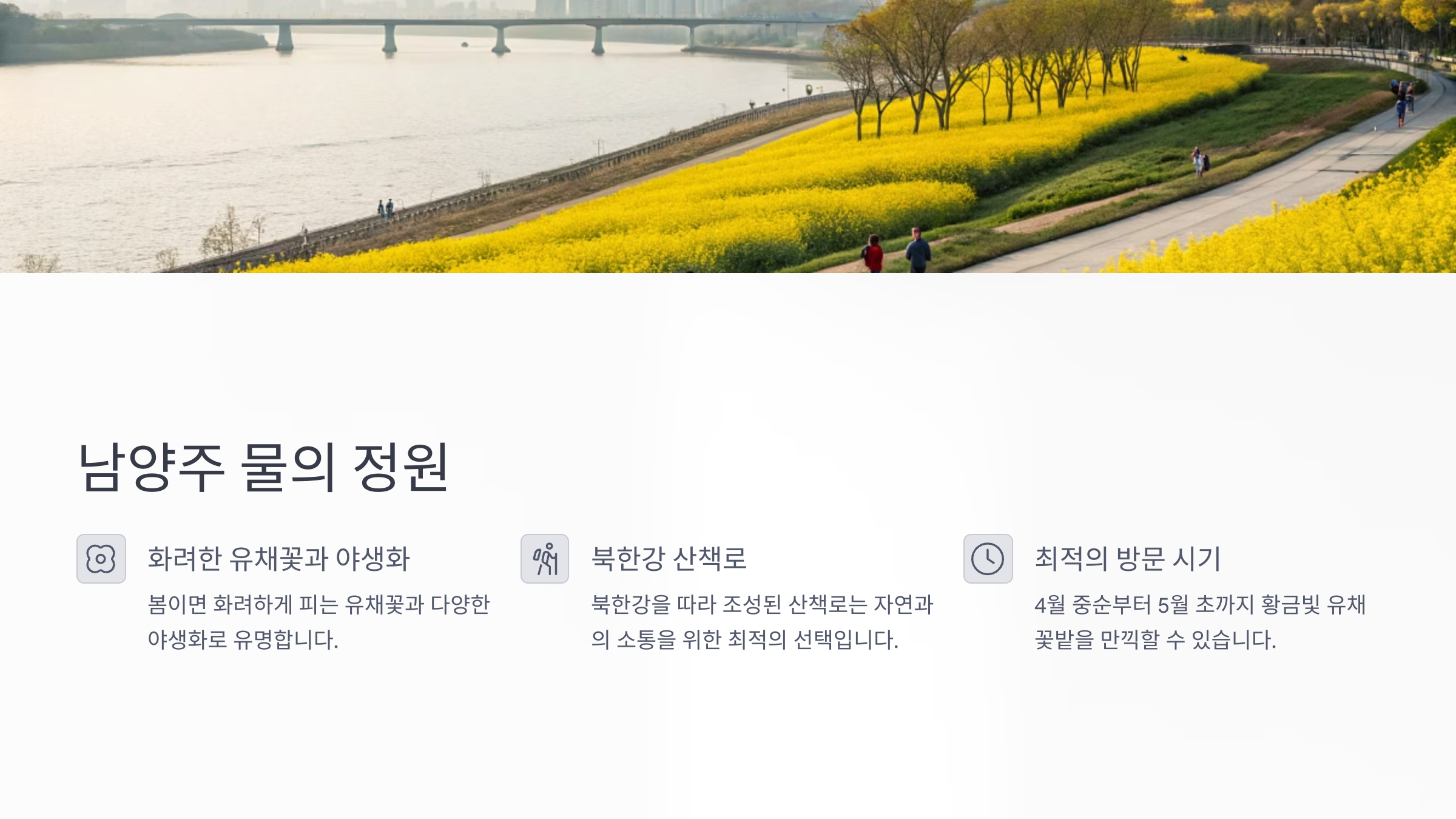 | 남양주 물의 정원 | 유채꽃, 북한강 산책로 |