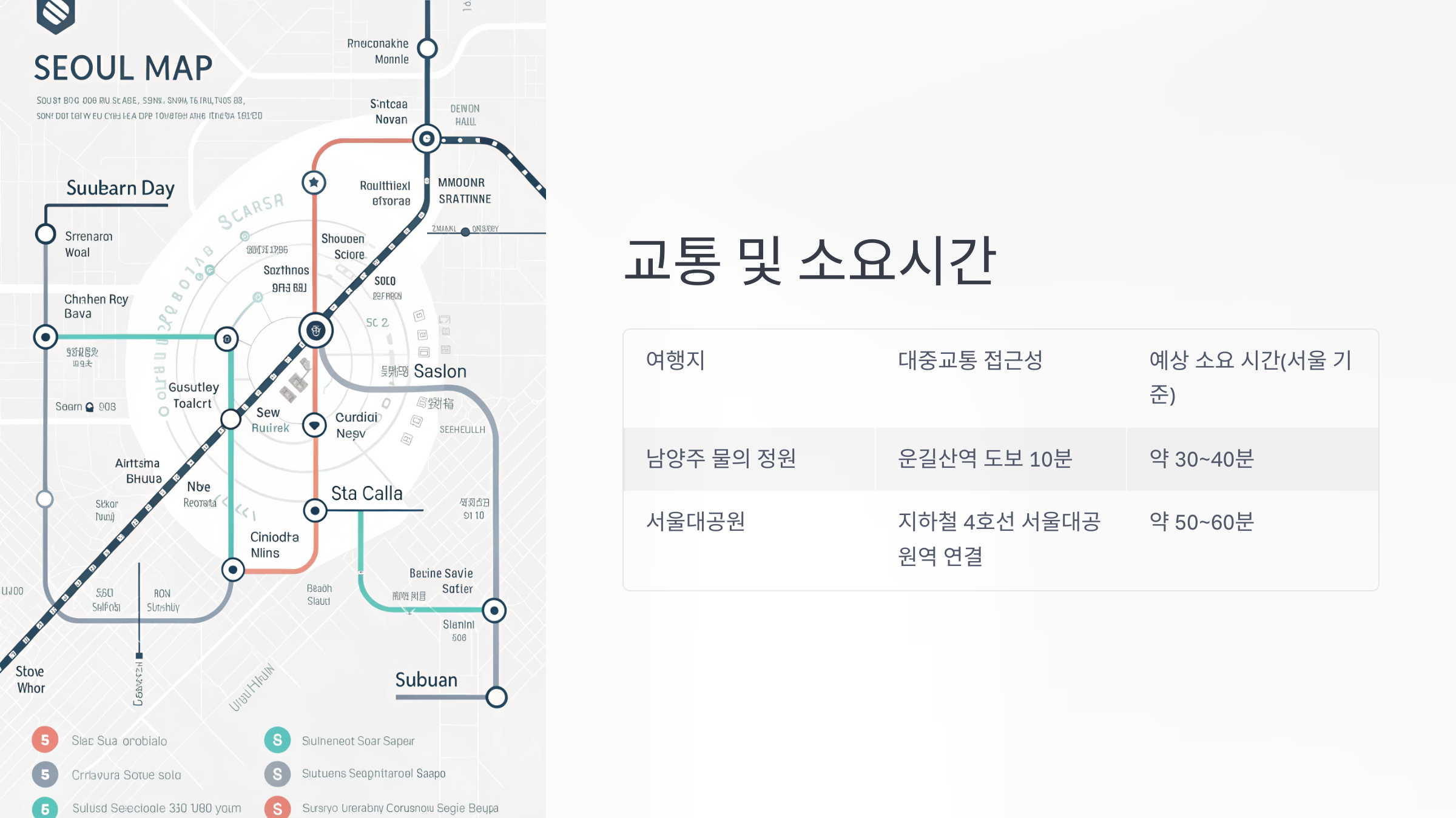 | 여행지 | 대중교통 접근성 | 예상 소요 시간(서울 기준) |