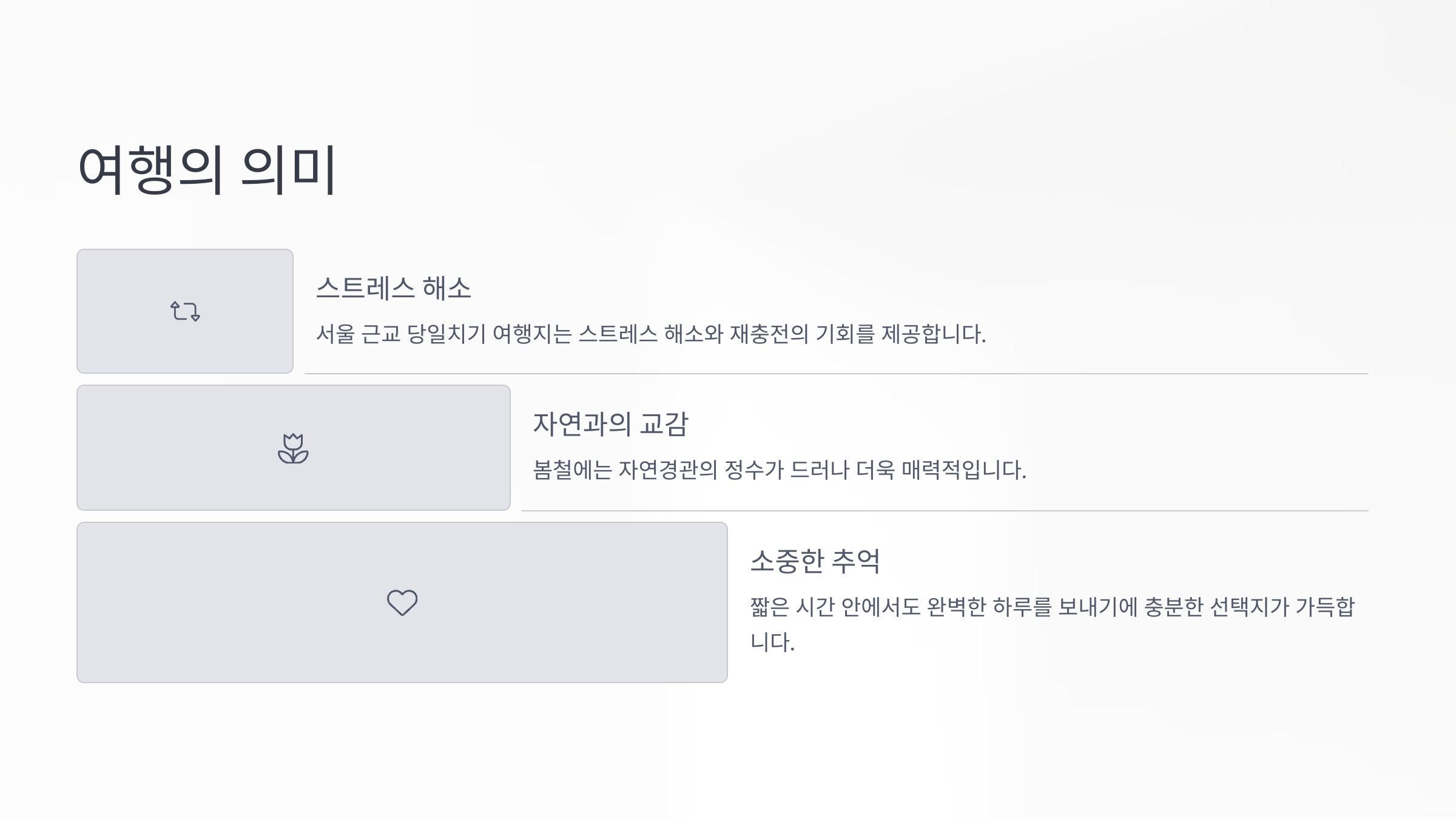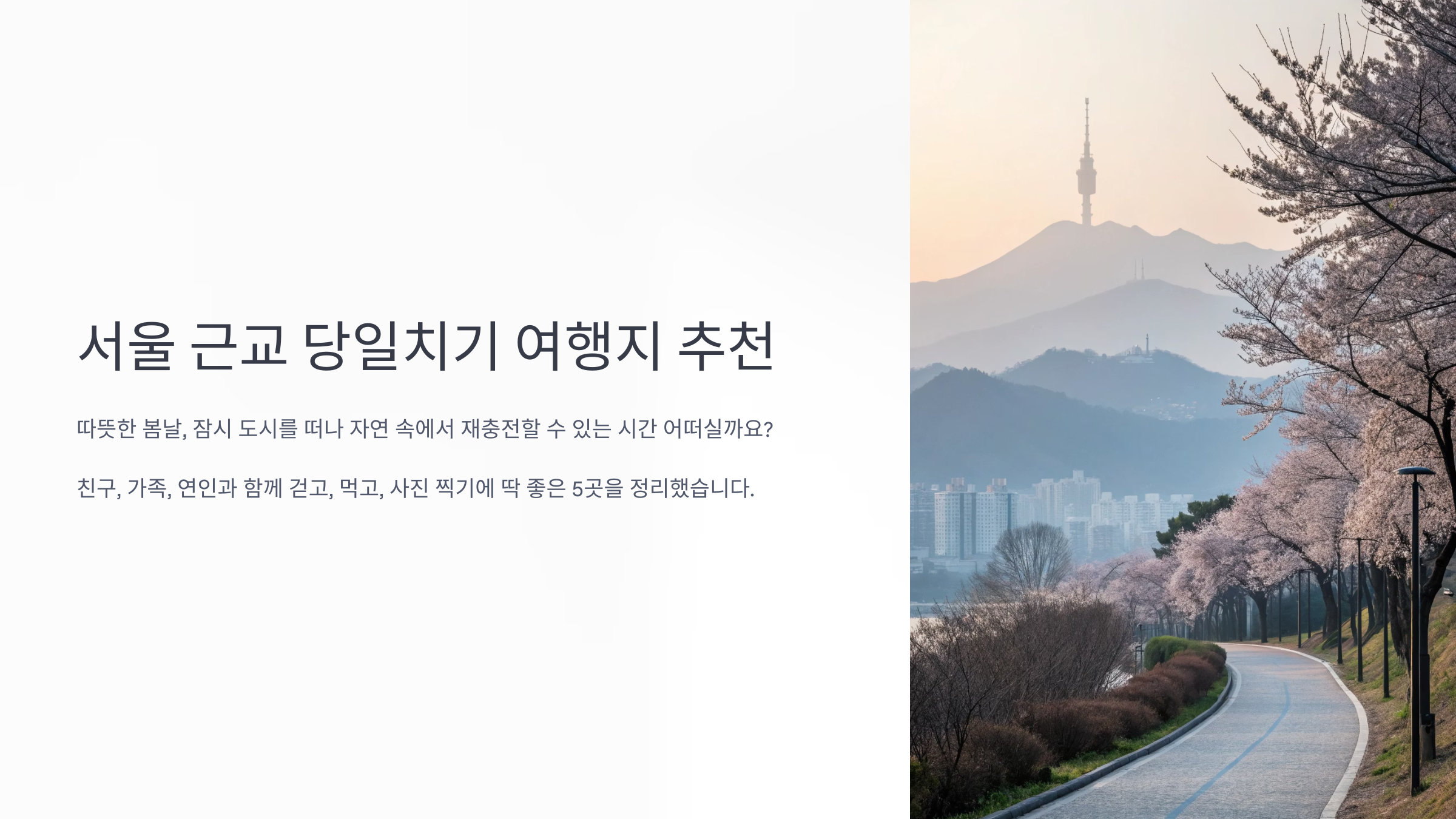 서울 근교 당일치기 여행지는 스트레스 해소와 재충전의 기회를 제공합니다.