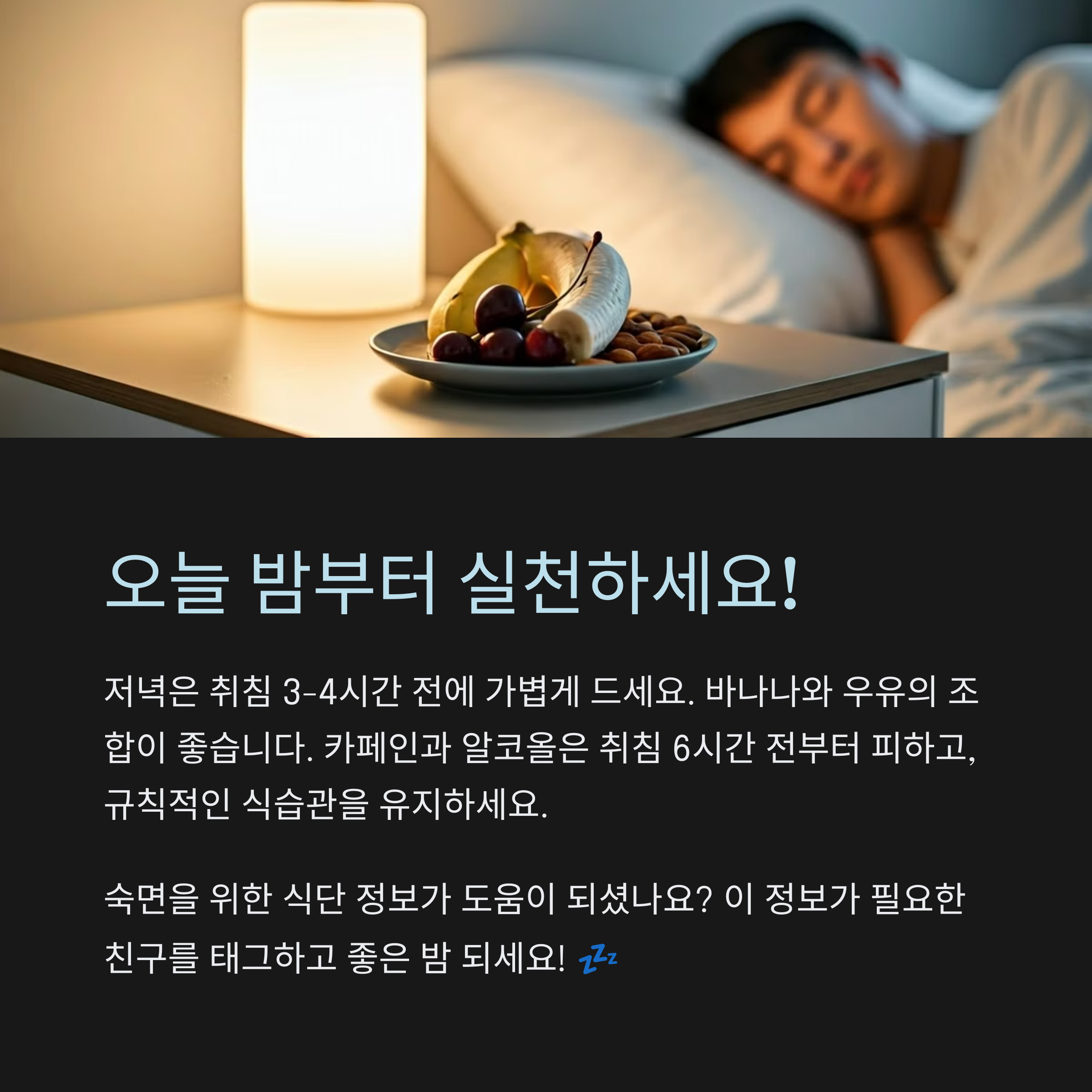 여러분이 숙면을 취하기 위해 선택한 음식은 무엇인가요? 댓글로 여러분의 경험을 나눠주세요.