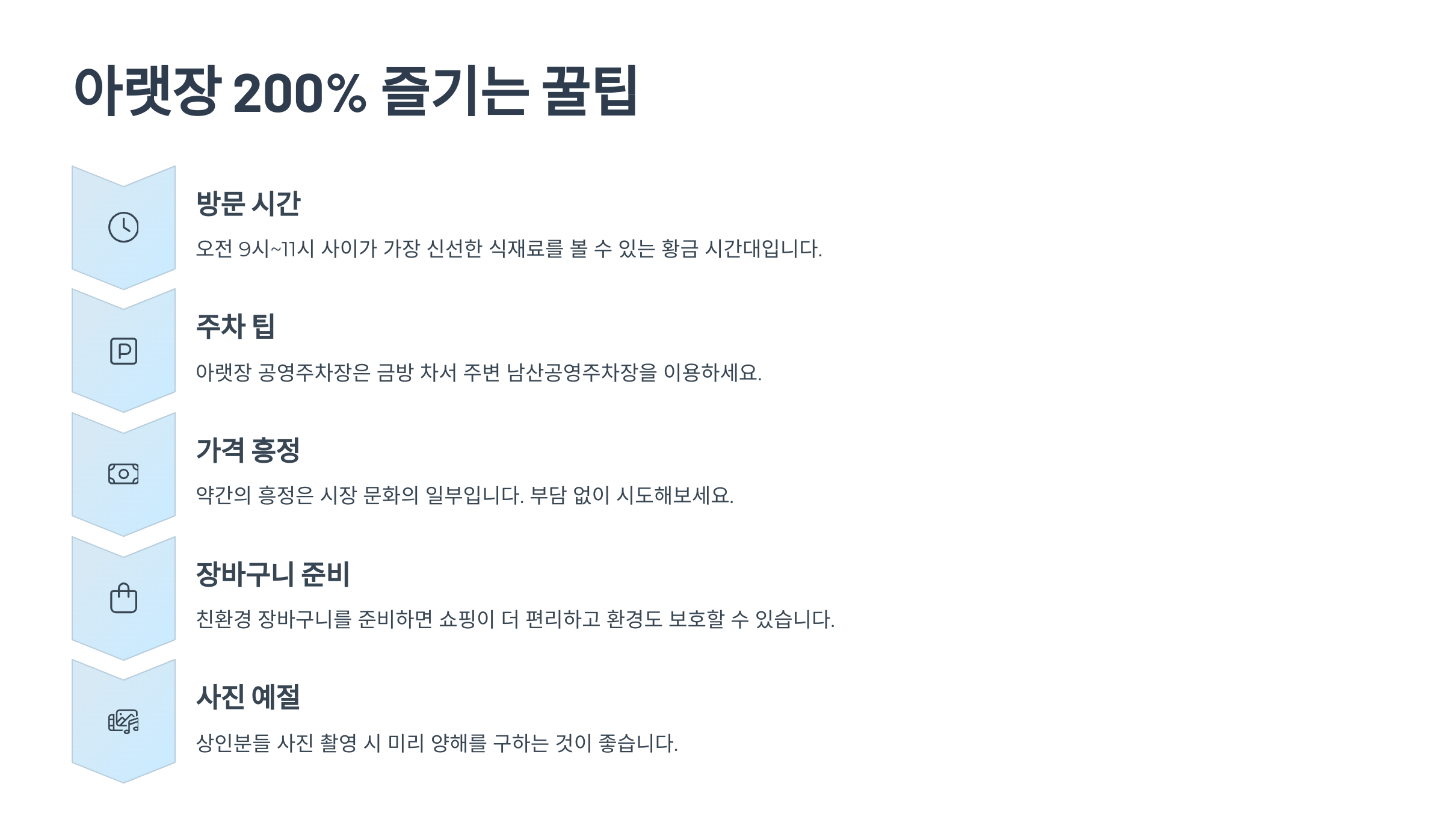 Tip. 아랫장 먹거리 골목은 점심·저녁 시간대 대기 줄이 길 수 있으니, 이른 시간 방문을 추천합니다.