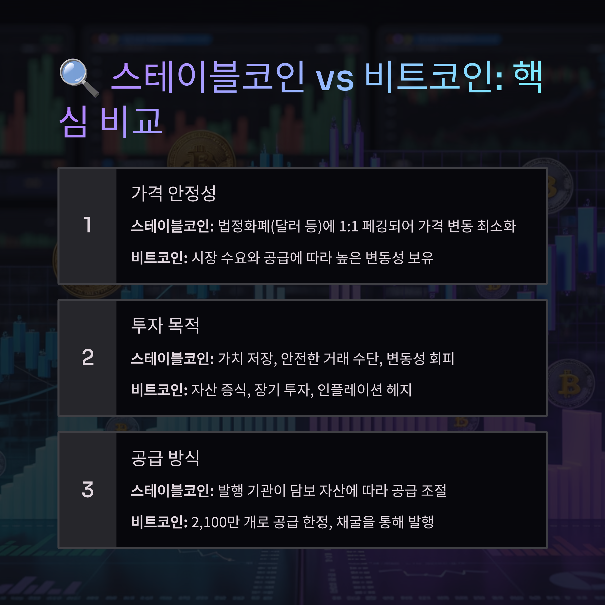 🔍 스테이블코인 vs 비트코인: 핵심 비교