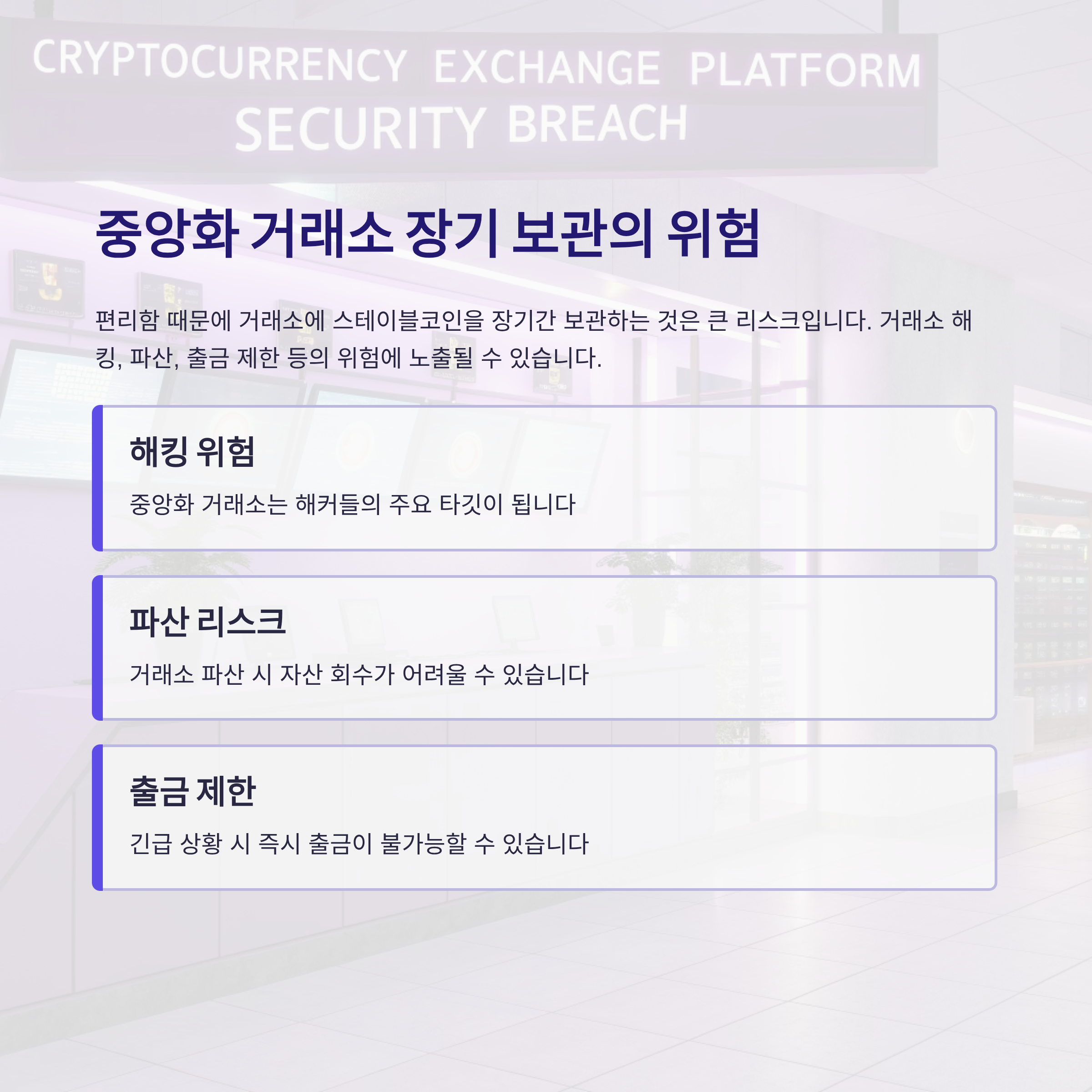 자산의 통제권을 거래소가 아닌 자신에게 두는 것이 가장 안전한 스테이블코인 보관 원칙입니다. 💡