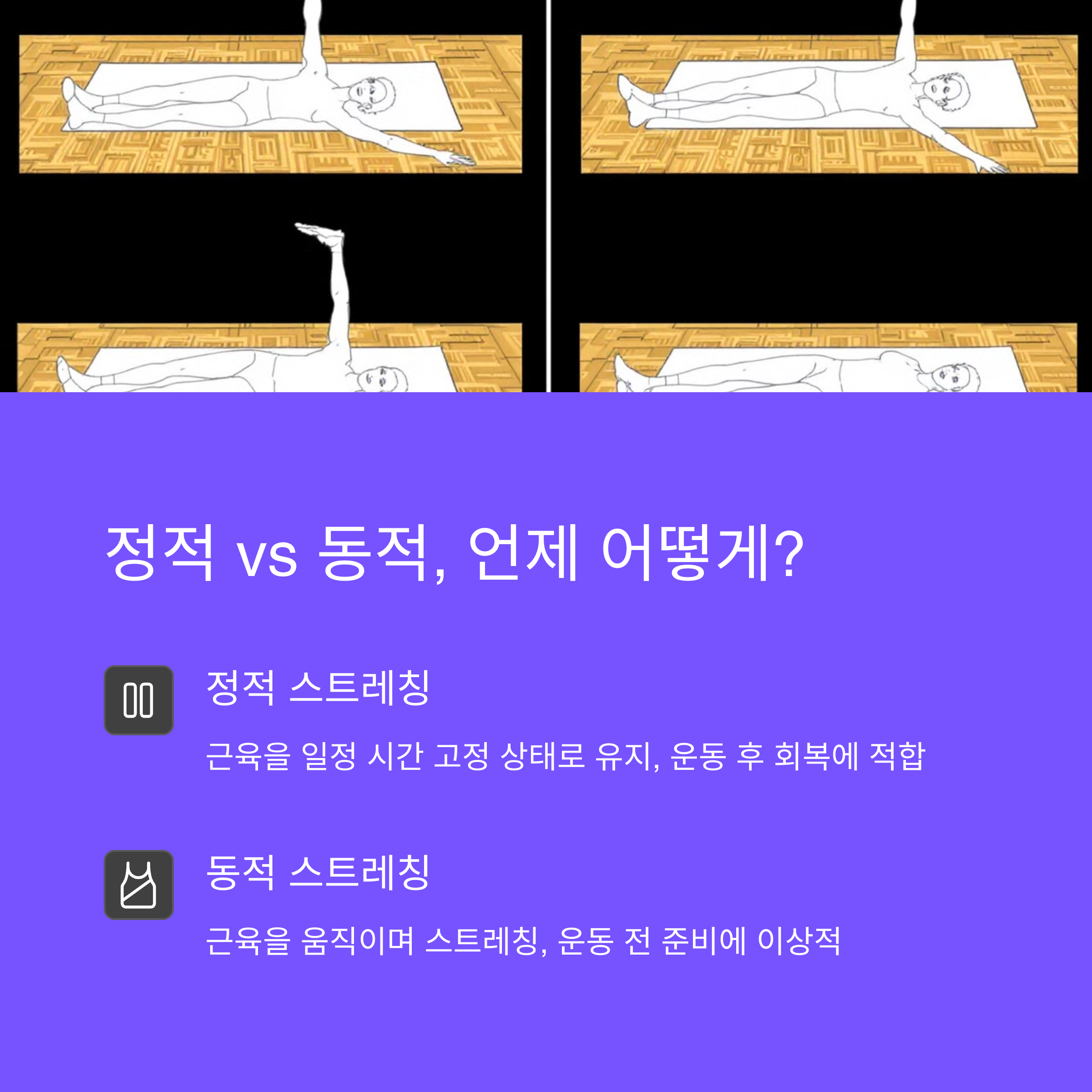 | 스트레칭 종류 | 올바른 방법 | 기대 효과 |