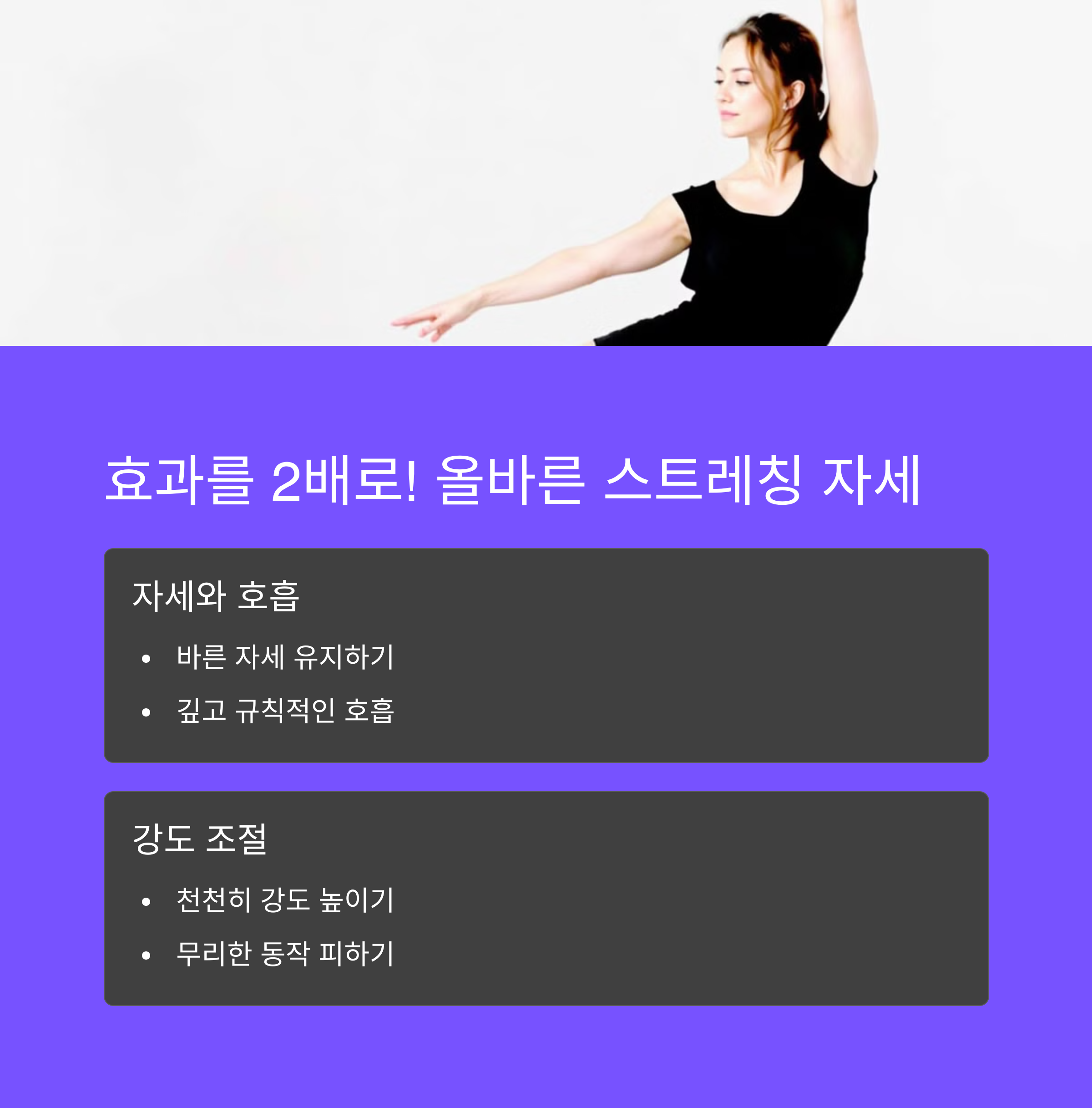 | 올바른 스트레칭 방법 | 점진적으로 강도를 조절하며 진행해야 합니다. |