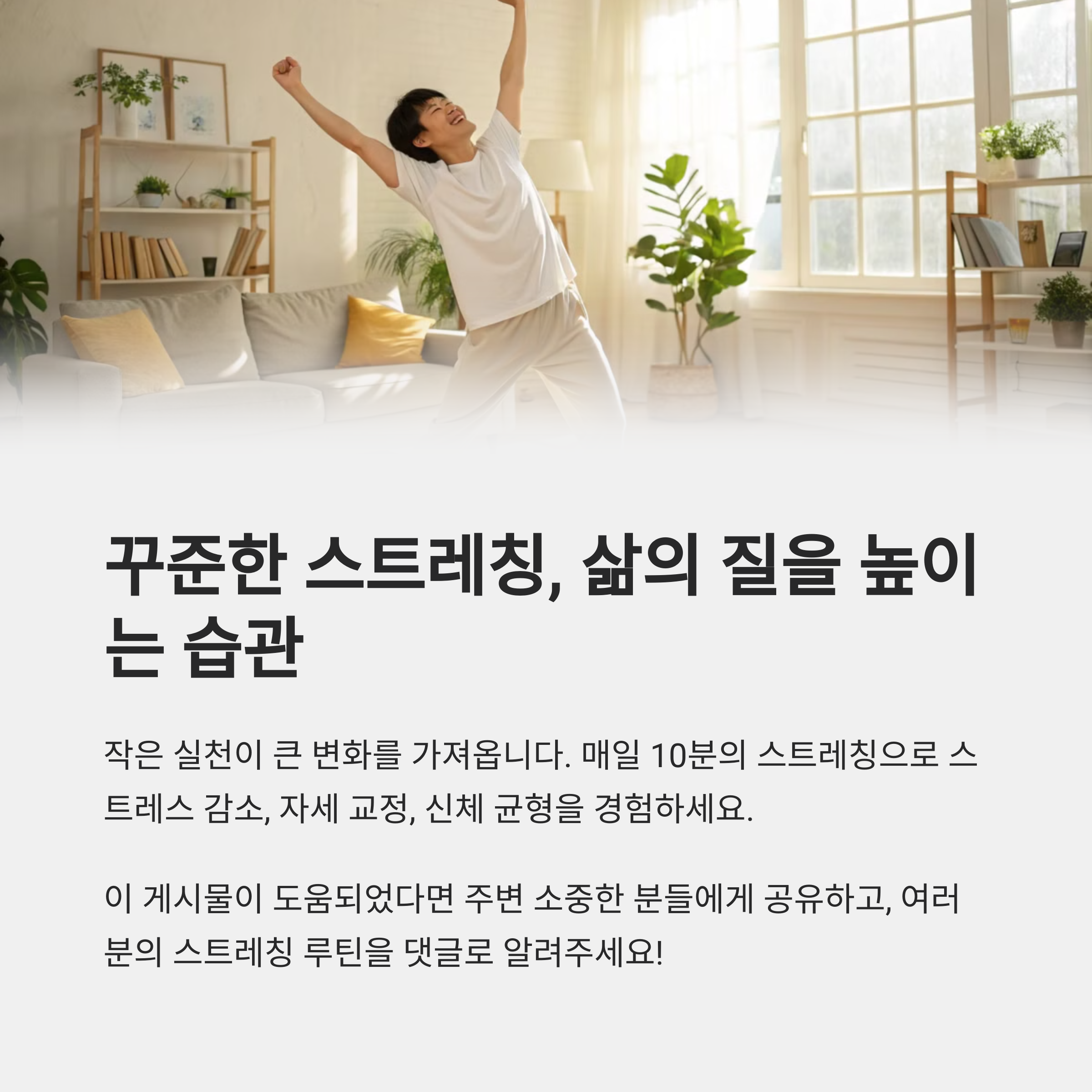 스트레칭을 해보신 경험이나 추천 루틴이 있다면 댓글로 공유해주세요. 많은 분들과 정보 나눔이 이루어지는 공간이 되었으면 좋겠습니다!
