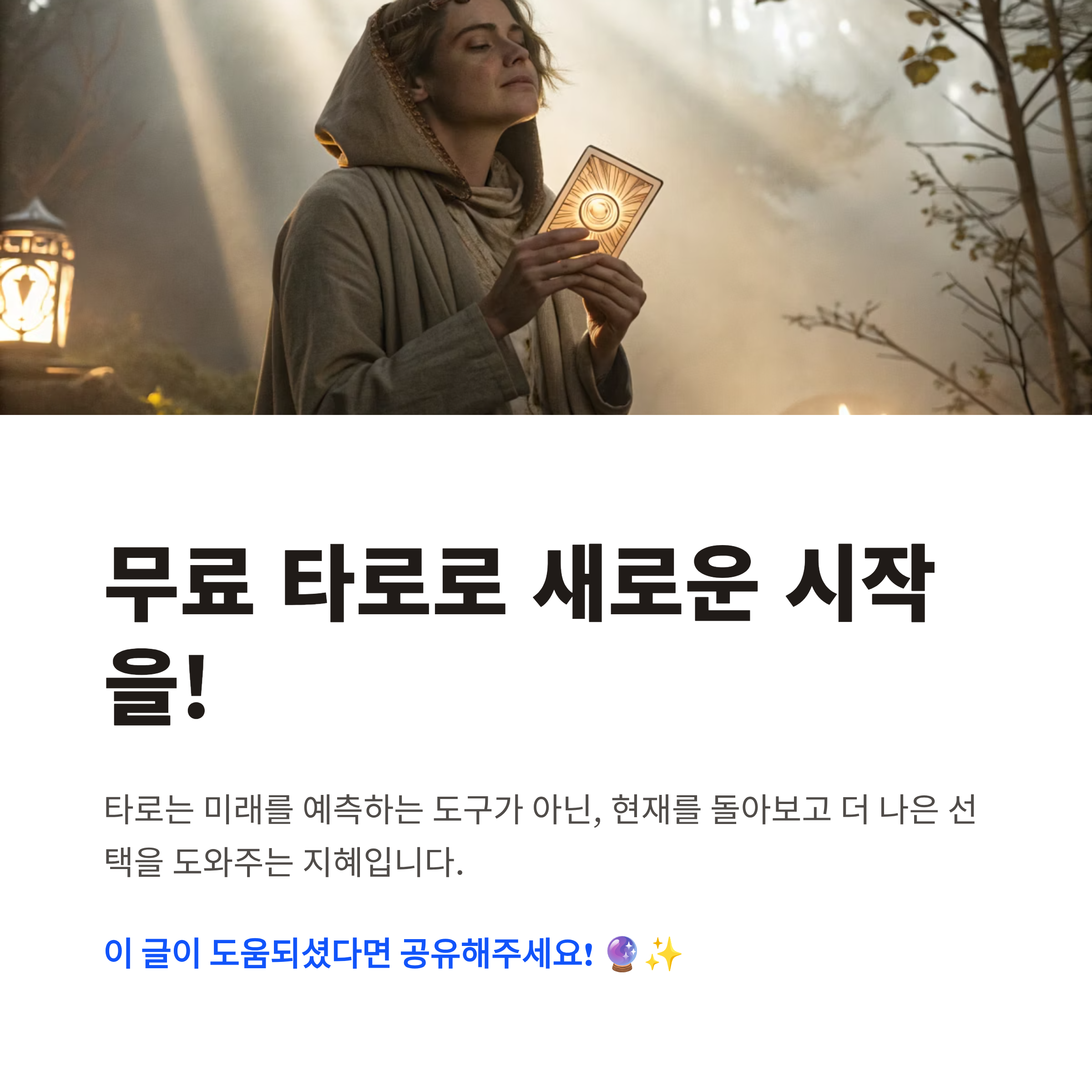 A1. 타로의 정확도는 '미래를 맞히는 것'이 아니라 '현재 내 상황과 마음에 얼마나 와닿는 조언을 주는가'에 있습니다. AI나 프로그램이 뽑은 카드라도, 그 해석을 보고 자신의 상황을 되돌아보며 통찰을 얻는다면 그것이 바로 '정확한' 타로 리딩입니다.