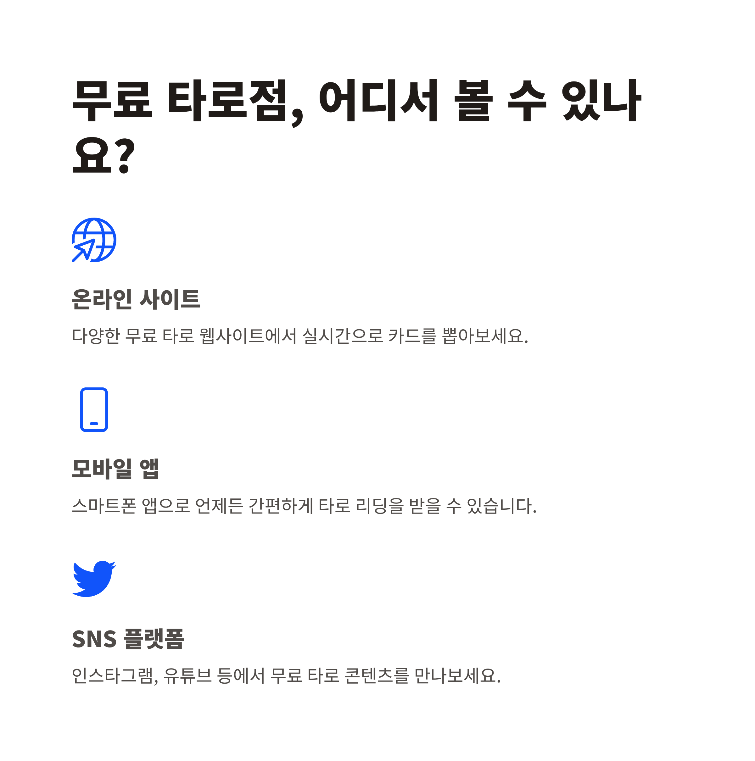 무료 타로점을 볼 수 있는 채널은 생각보다 다양합니다. 각각의 특징을 알고 나에게 맞는 방법을 선택해 보세요.