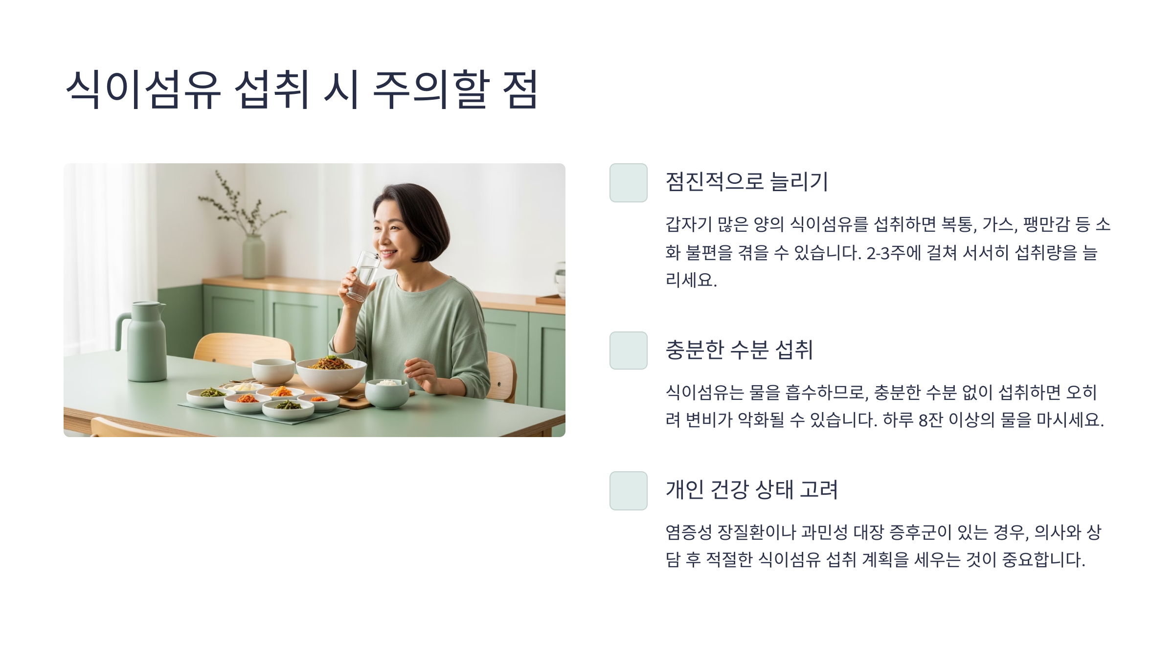 ⚠ 식이섬유 섭취 시 주의할 점