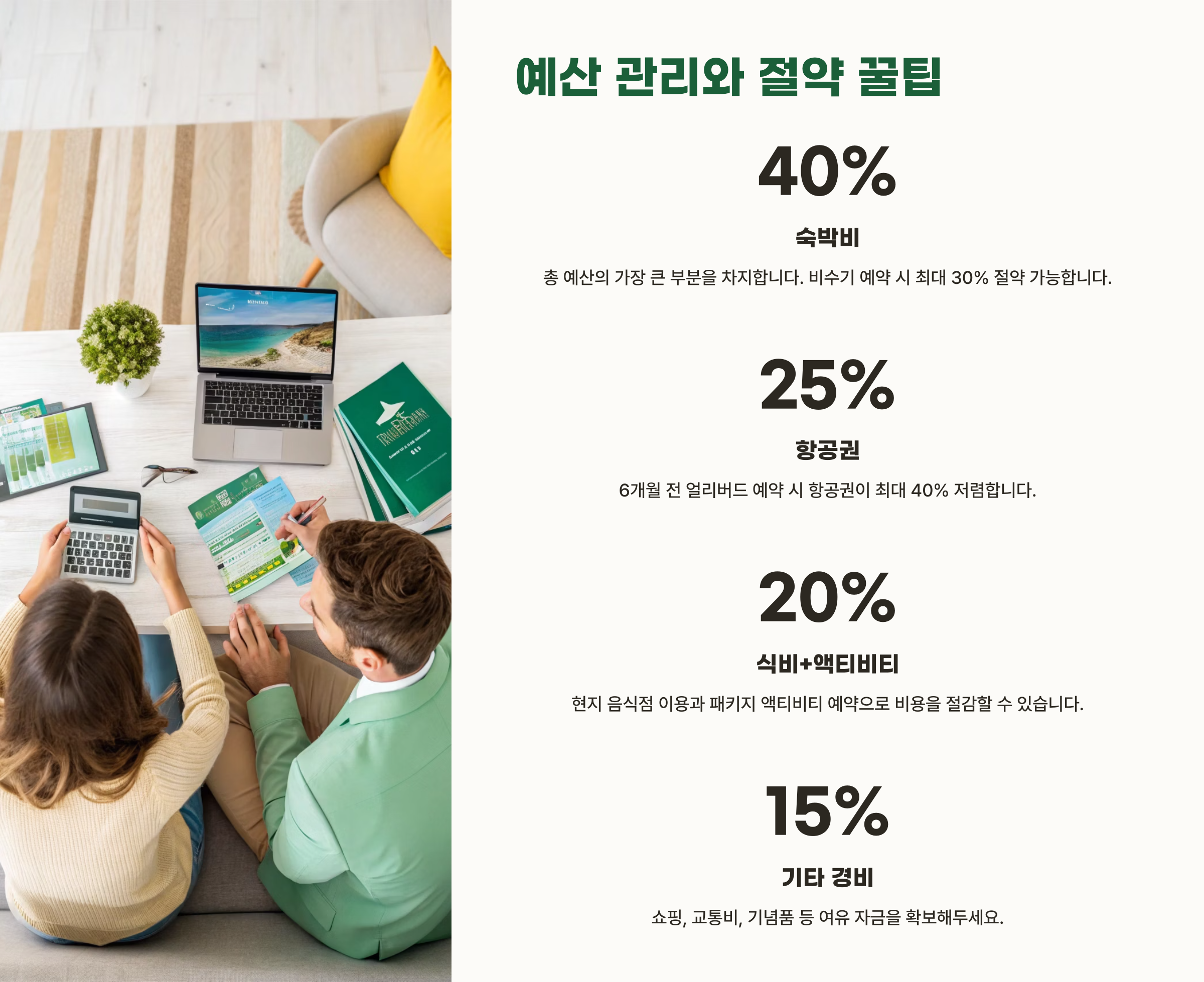 | 예산 배분 | 항공, 숙박, 식비 등 항목별로 |