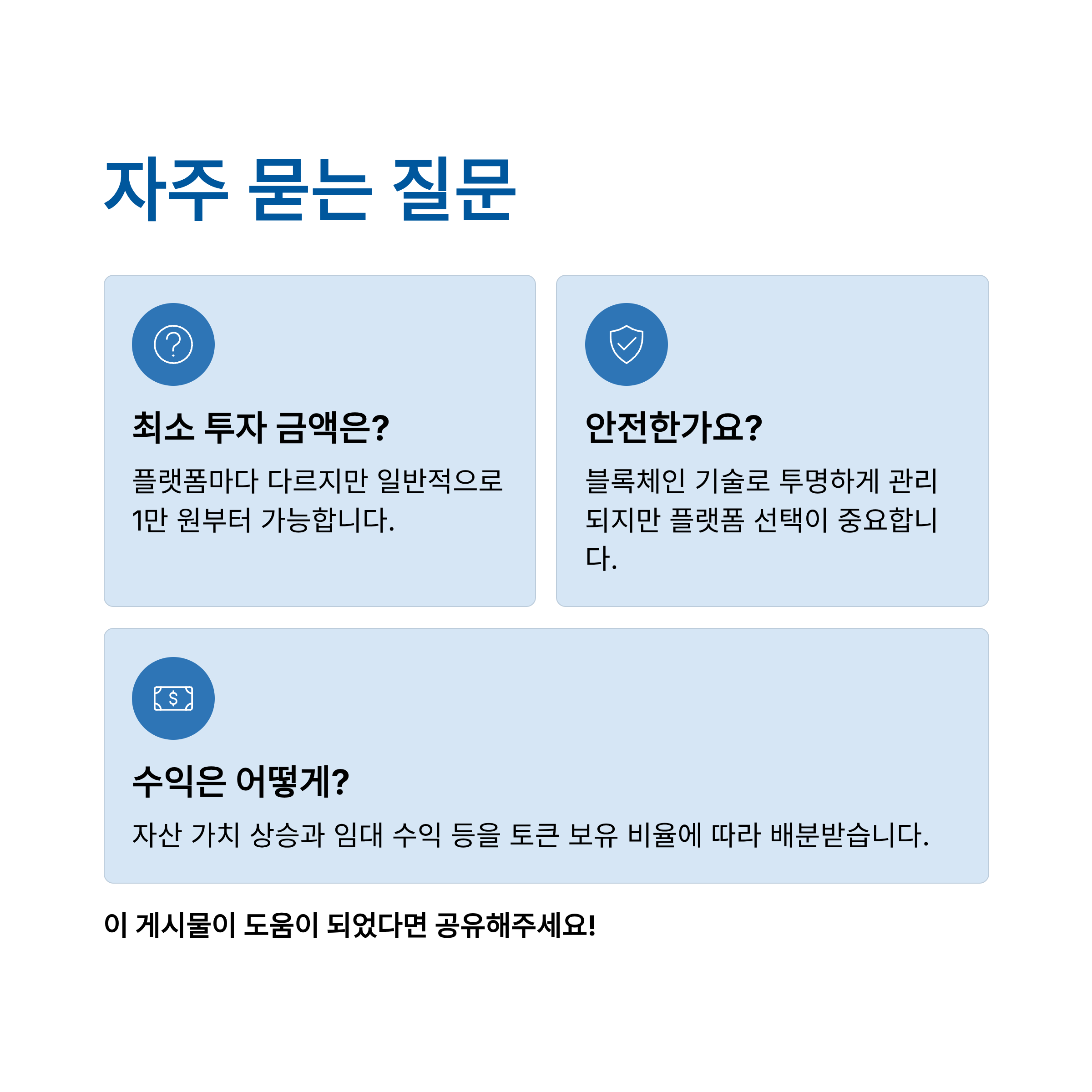 - 접근성 향상: 고액 자산에 대한 투자 진입 장벽을 낮춰 일반 투자자들도 소액으로 투자할 수 있는 기회를 제공합니다.
