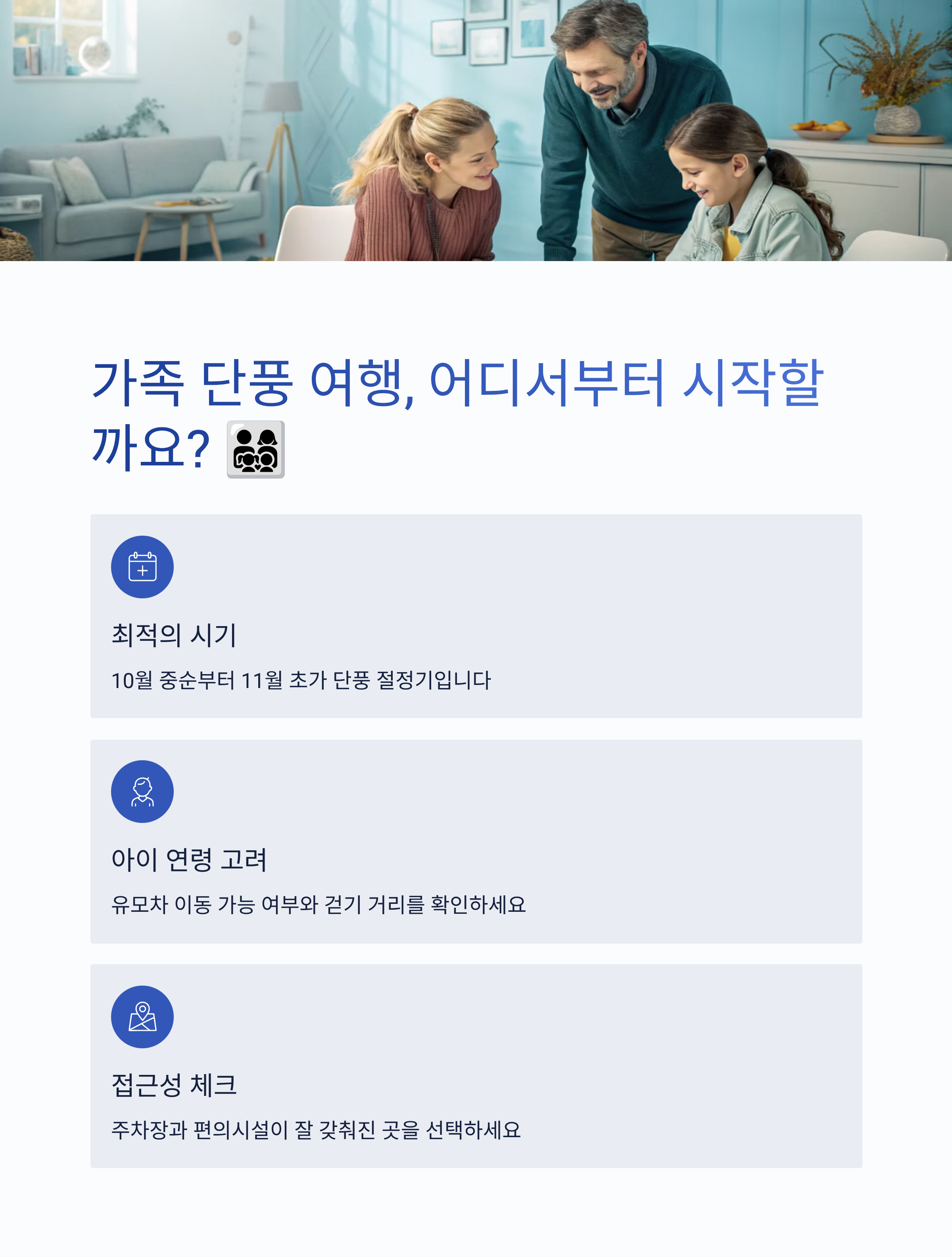 Q1. 아이와 함께 단풍 여행 시 가장 중요한 고려 사항은 무엇인가요?