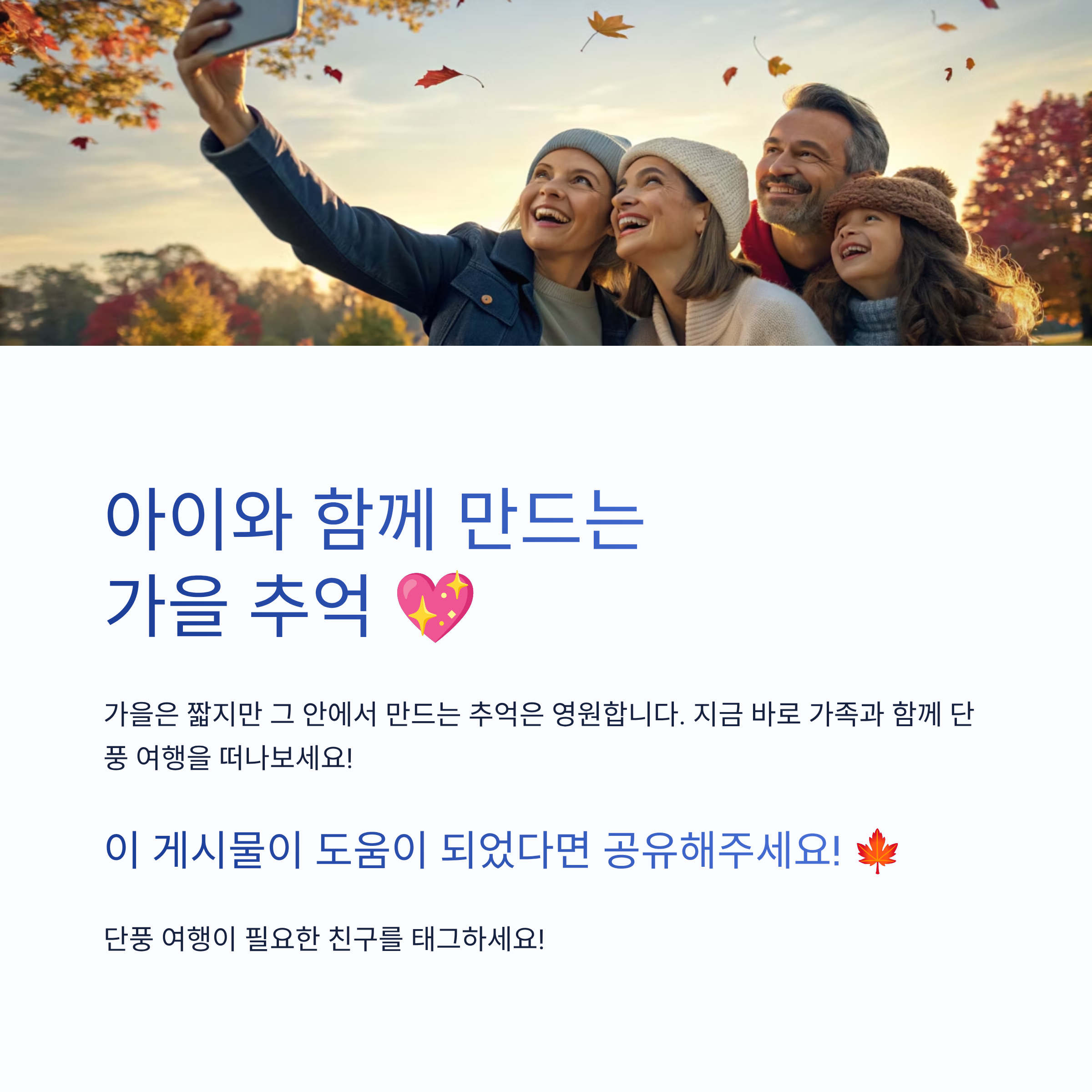 아이와 함께하는 가을 단풍 여행은 온 가족에게 잊지 못할 추억을 선물합니다. 하지만 아이들의 안전과 즐거움을 동시에 만족시키려면 꼼꼼한 준비가 필요합니다. 이 가이드가 여러분의 시작점이 되어줄 것입니다.