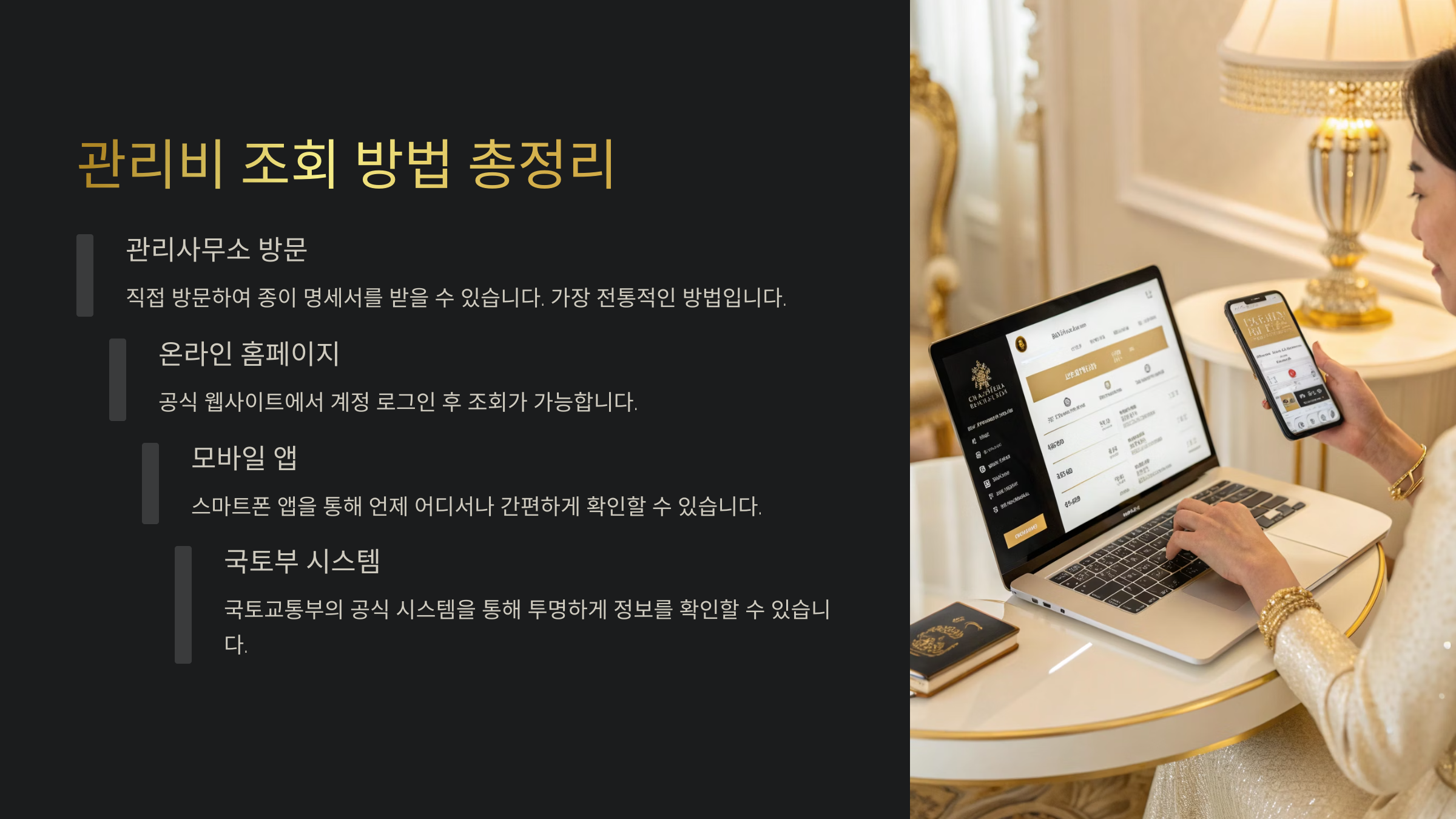 자, 이제 온라인으로도 똑똑하게 관리비를 확인할 수 있다는 거 알게 됐죠? 다음엔 모바일 앱을 이용해서 더 빠르고 간편하게 관리비를 조회하는 방법을 소개할게요 📲