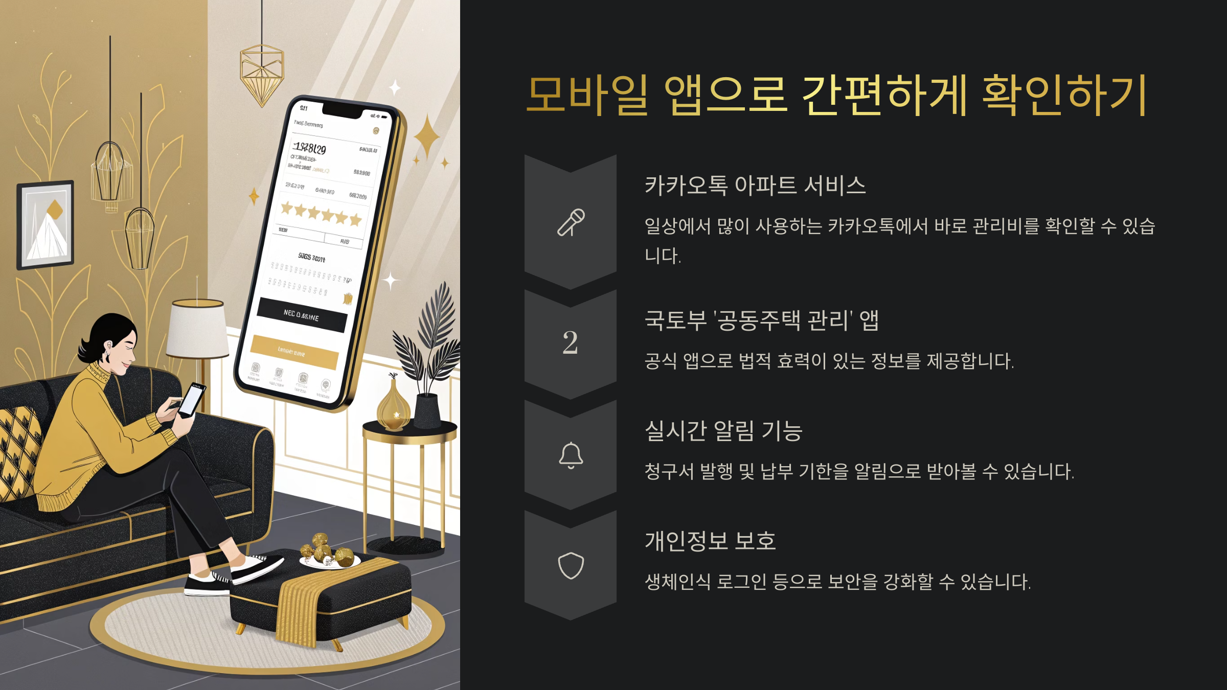 요즘은 스마트폰 하나면 관리비도 쉽게 확인할 수 있는 시대예요. 앱만 설치하면 집 안에서도, 출근길 지하철 안에서도 간편하게 조회할 수 있어서 정말 편하죠! 게다가 알림 기능까지 있으니 고지서도 놓칠 일이 없어요.