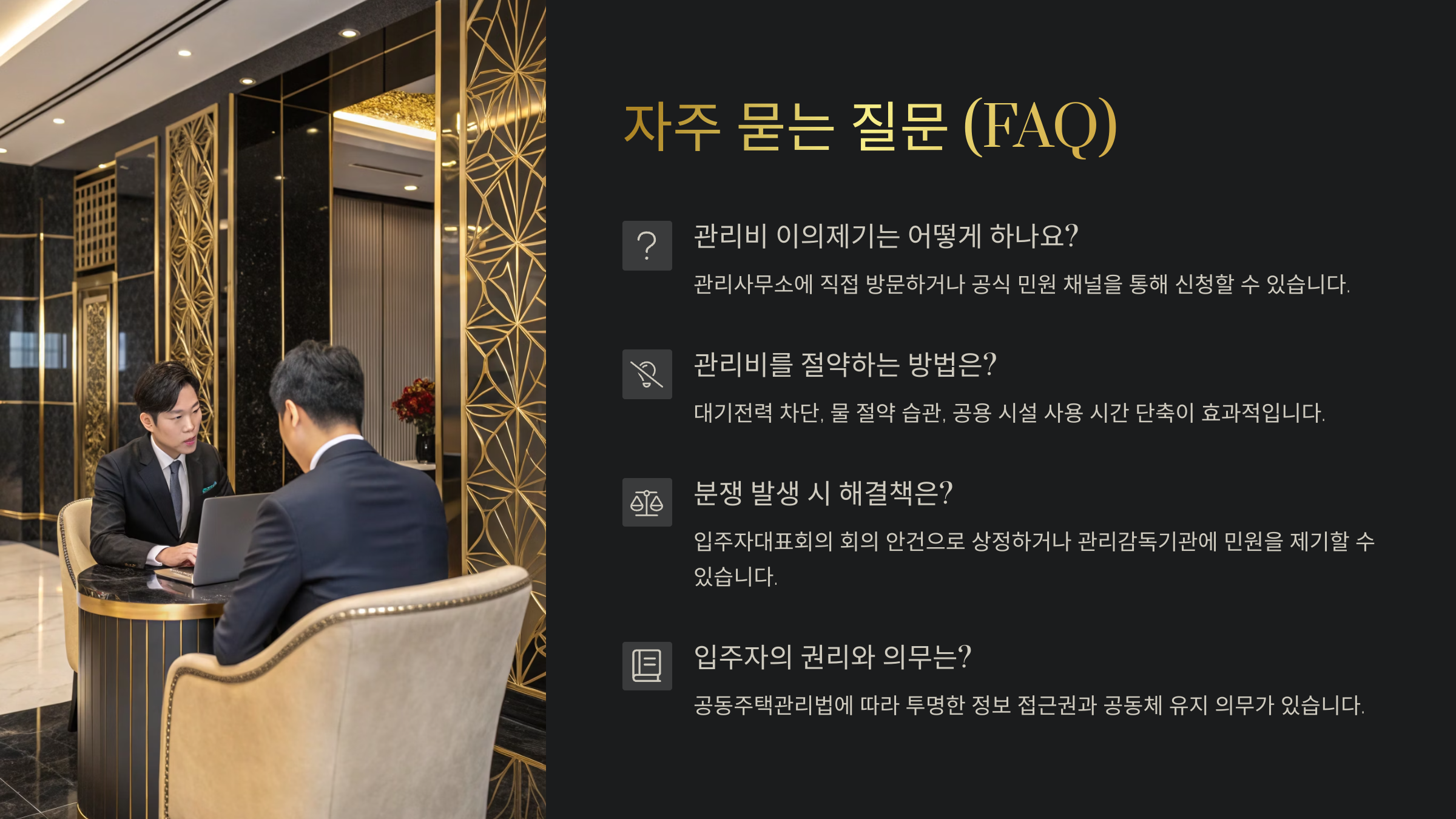 관리비는 단순히 매달 나가는 돈이 아니라, 내 생활과 안전을 책임지는 중요한 부분이에요. 그래서 관리비를 정확히 이해하고, 어떻게 구성되어 있는지 아는 건 꼭 필요해요!