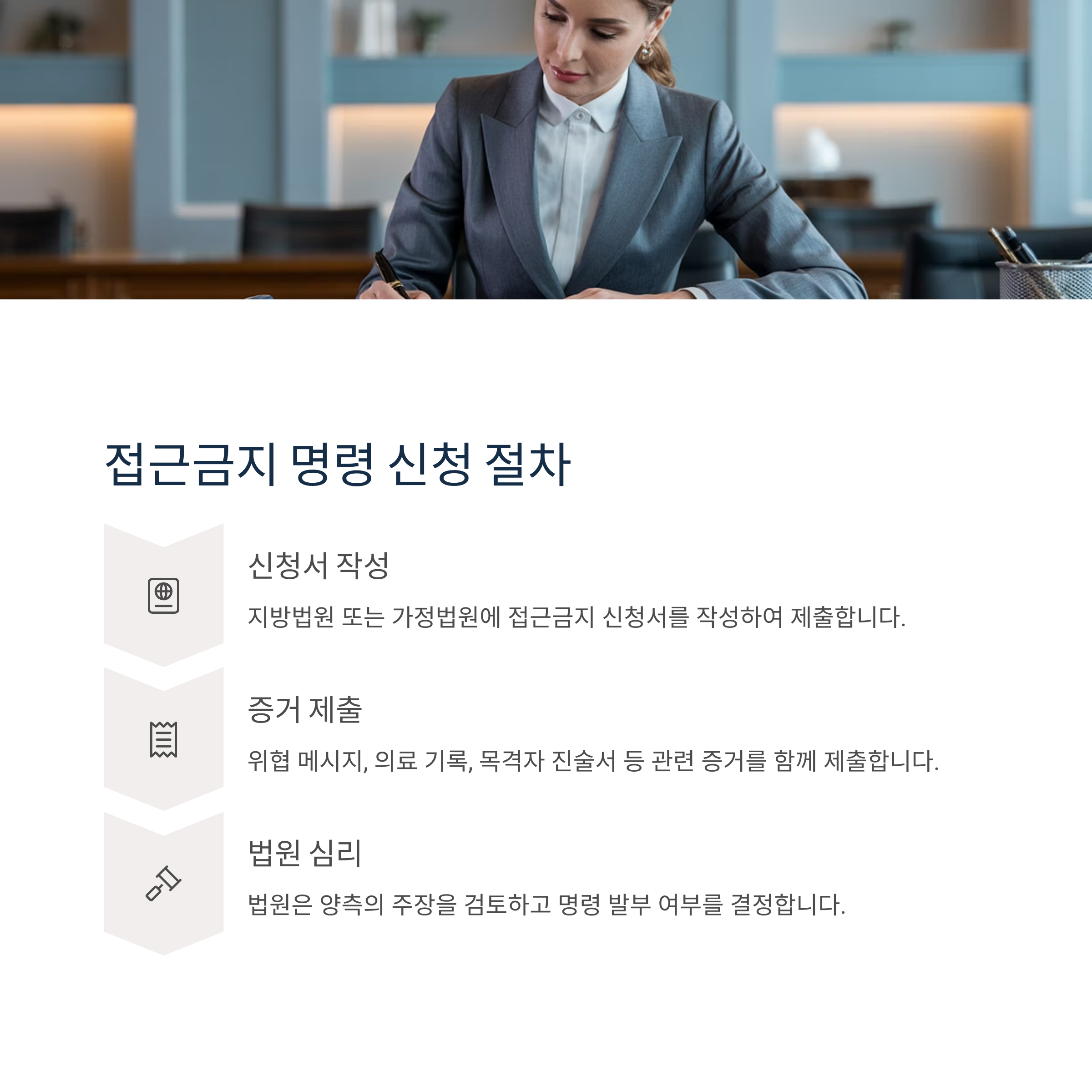 접근금지 명령은 피해자 보호를 위한 강력한 법적 조치입니다. 📋