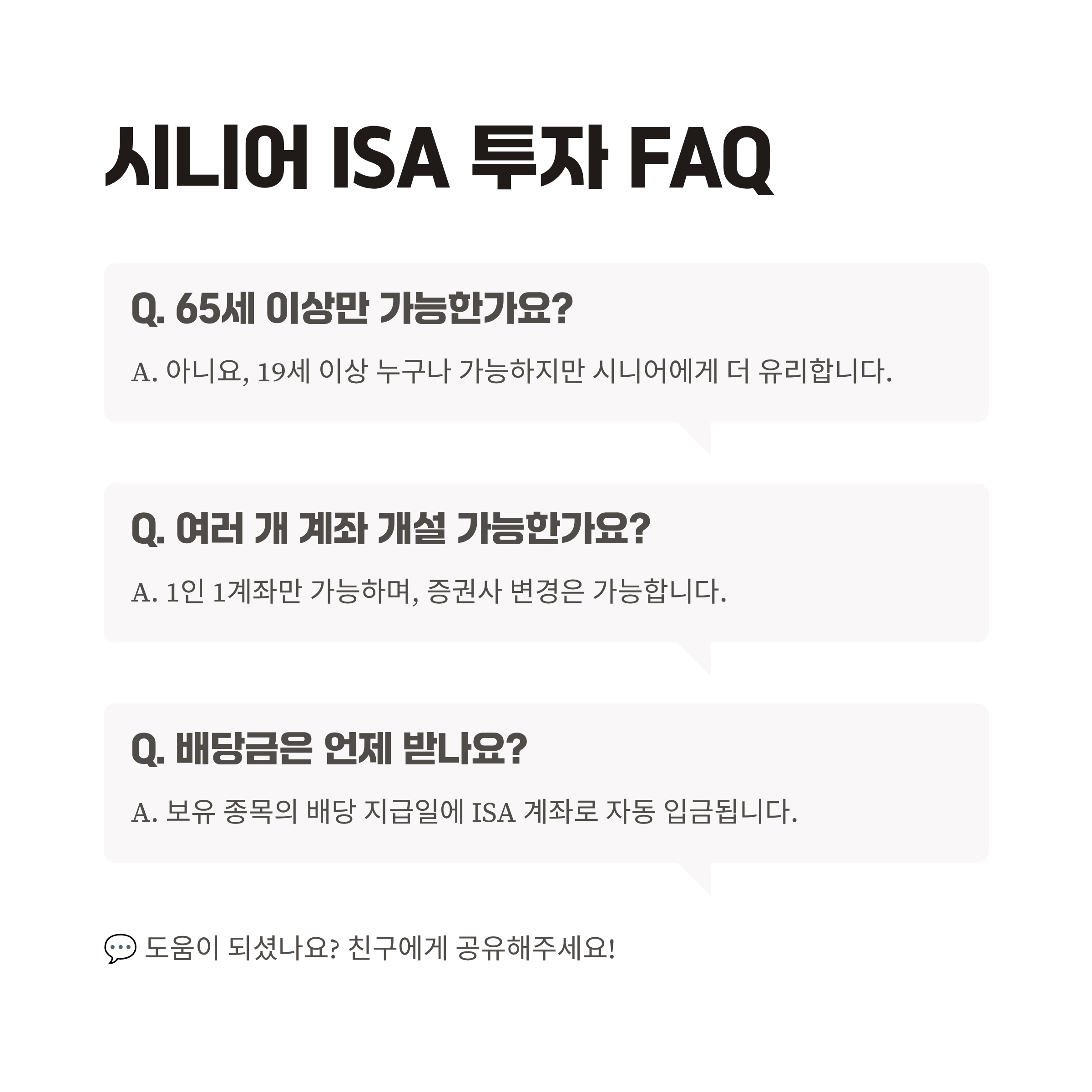 ❓ 궁금증 해결: 시니어 ISA 투자 FAQ