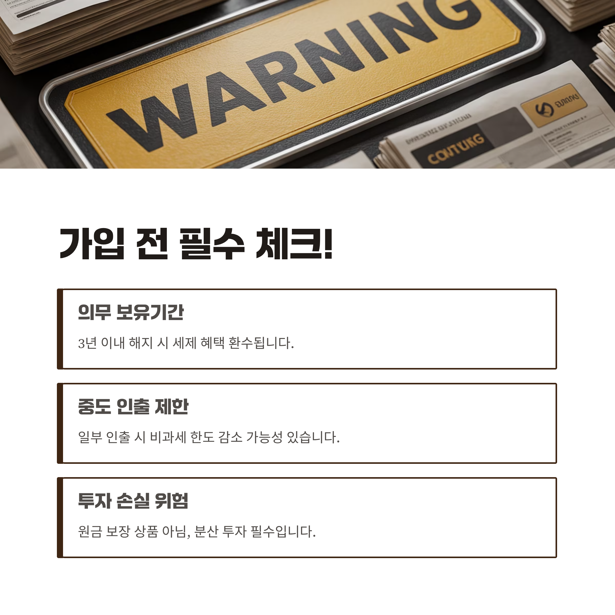 👇 ISA 계좌에도 몇 가지 제약 조건이 있습니다. 반드시 알아야 할 주의사항을 살펴봅니다.