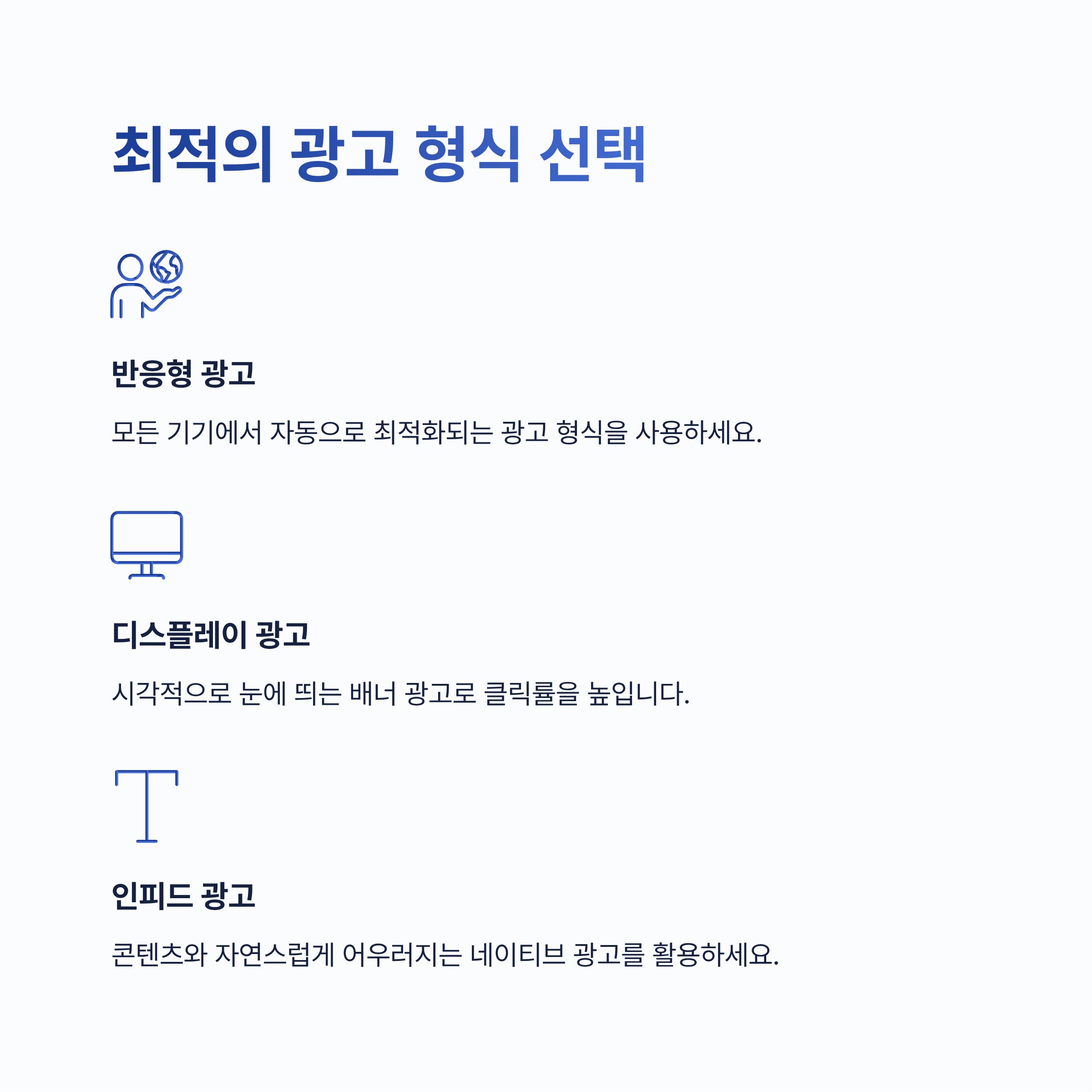 - 반응형 디자인 고려: 모바일, 태블릿, PC 등 다양한 기기에서 광고가 깨지지 않고 최적의 형태로 노출되도록 반응형 광고 단위를 사용합니다.