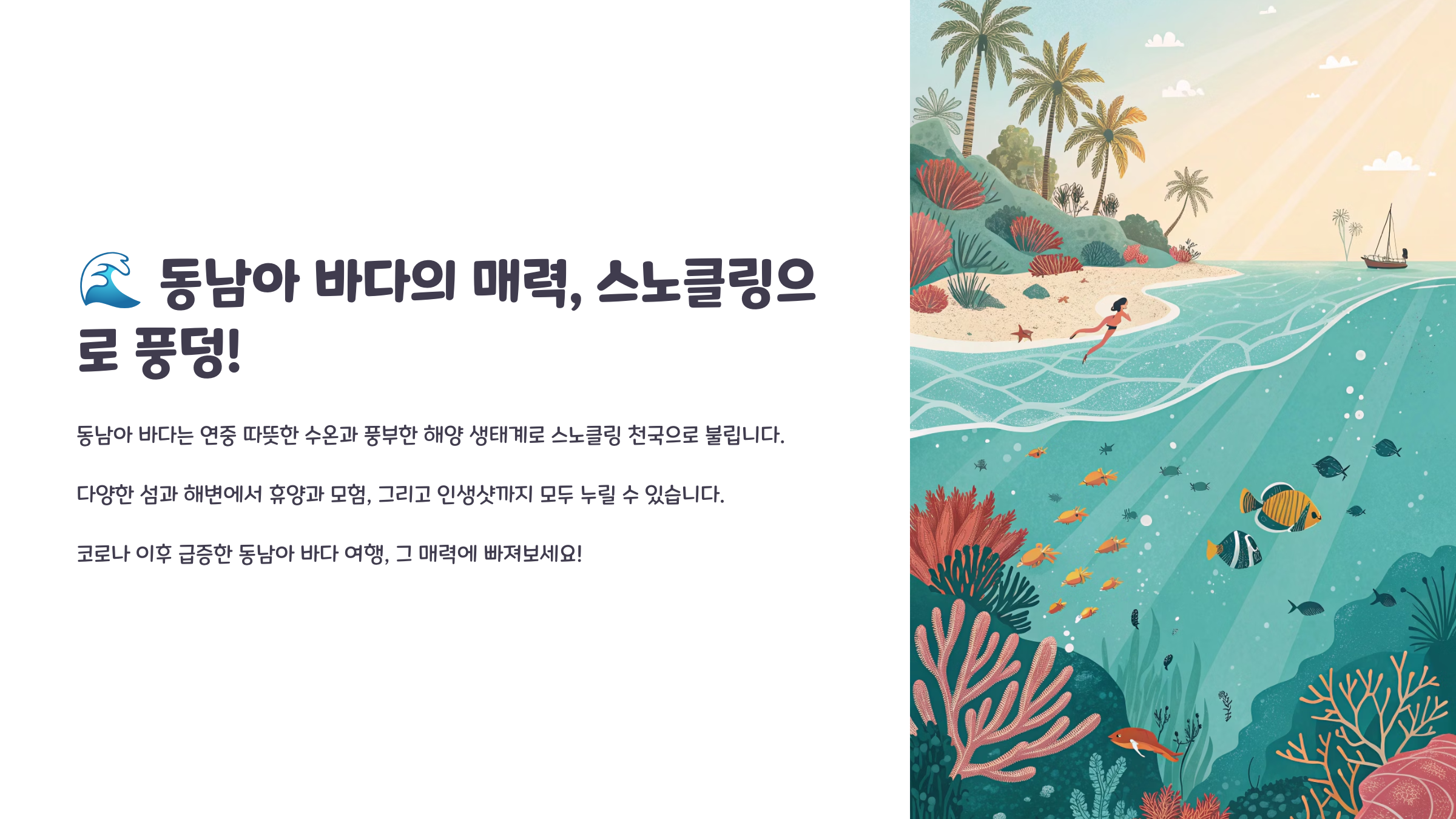 🌊 동남아 바다의 매력, 스노클링으로 풍덩!