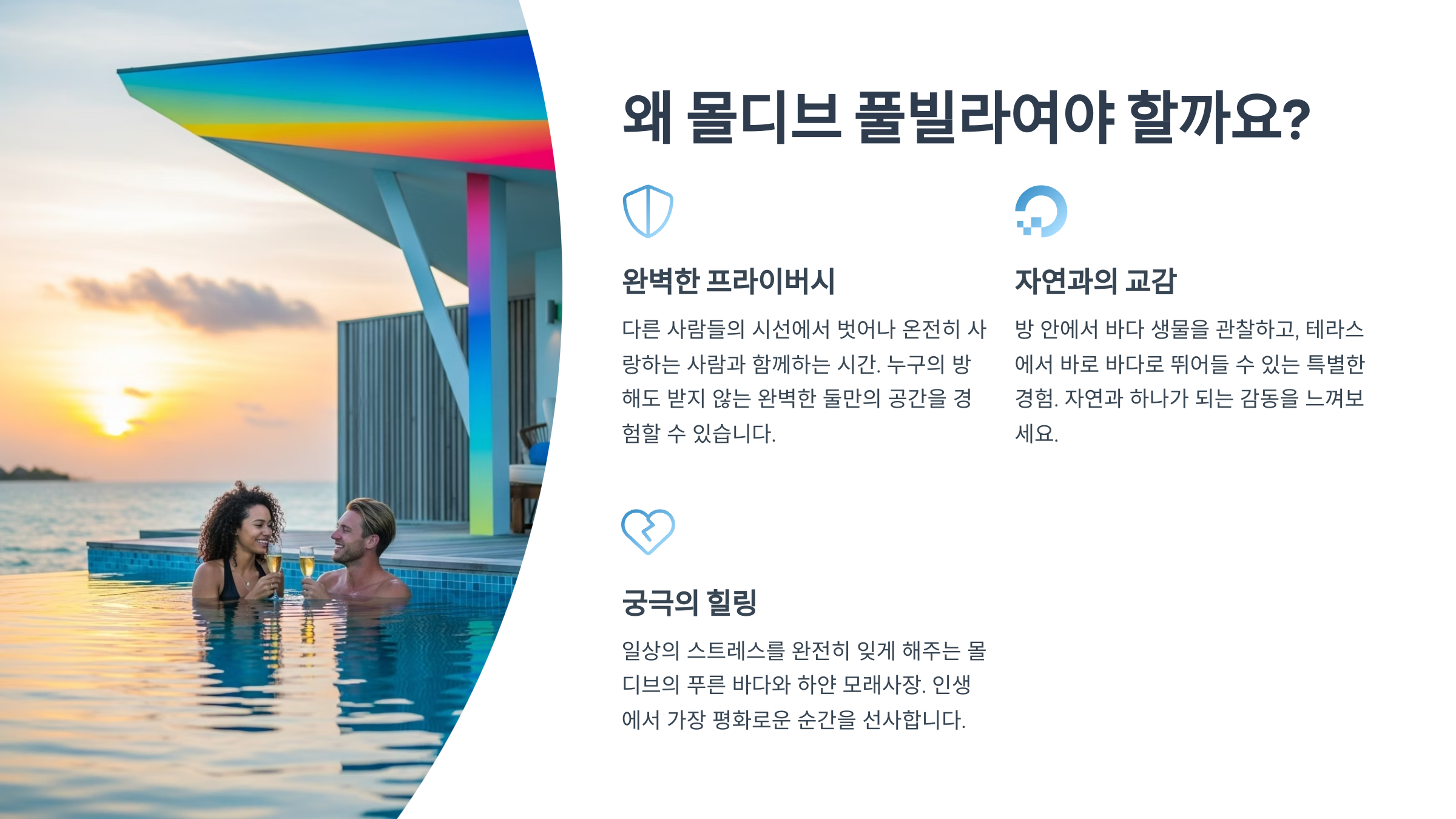 📊 몰디브 풀빌라의 핵심 가치 요약