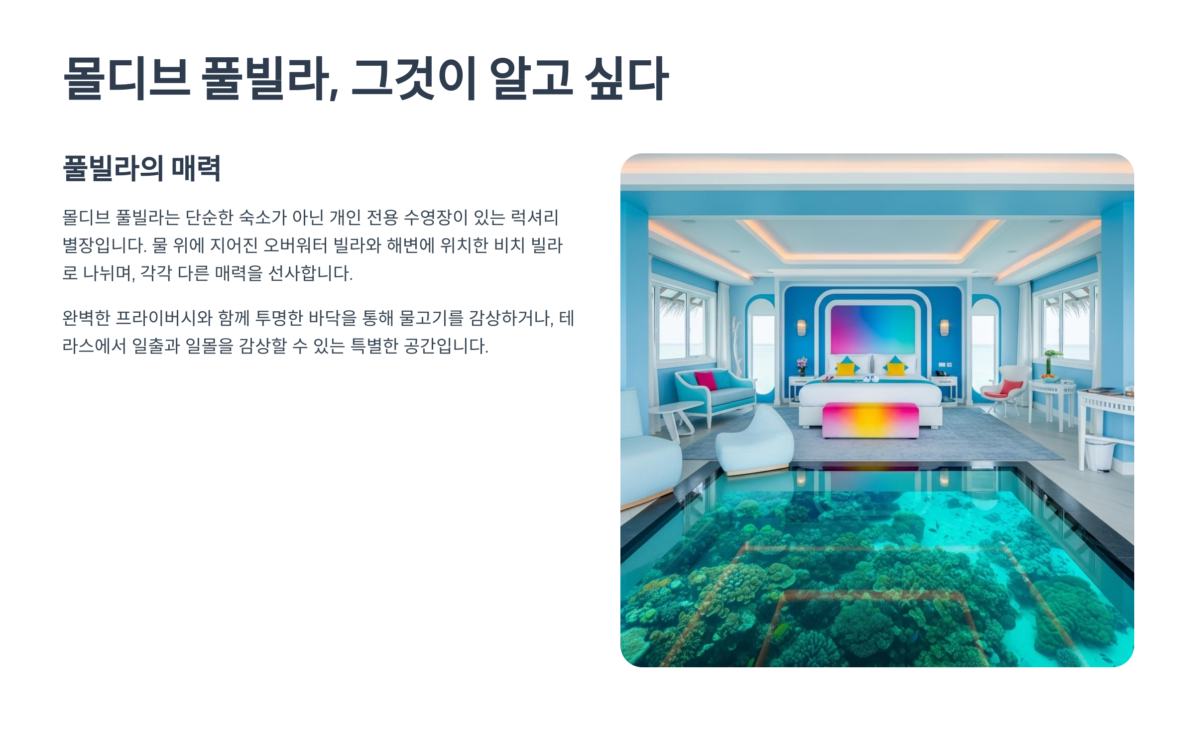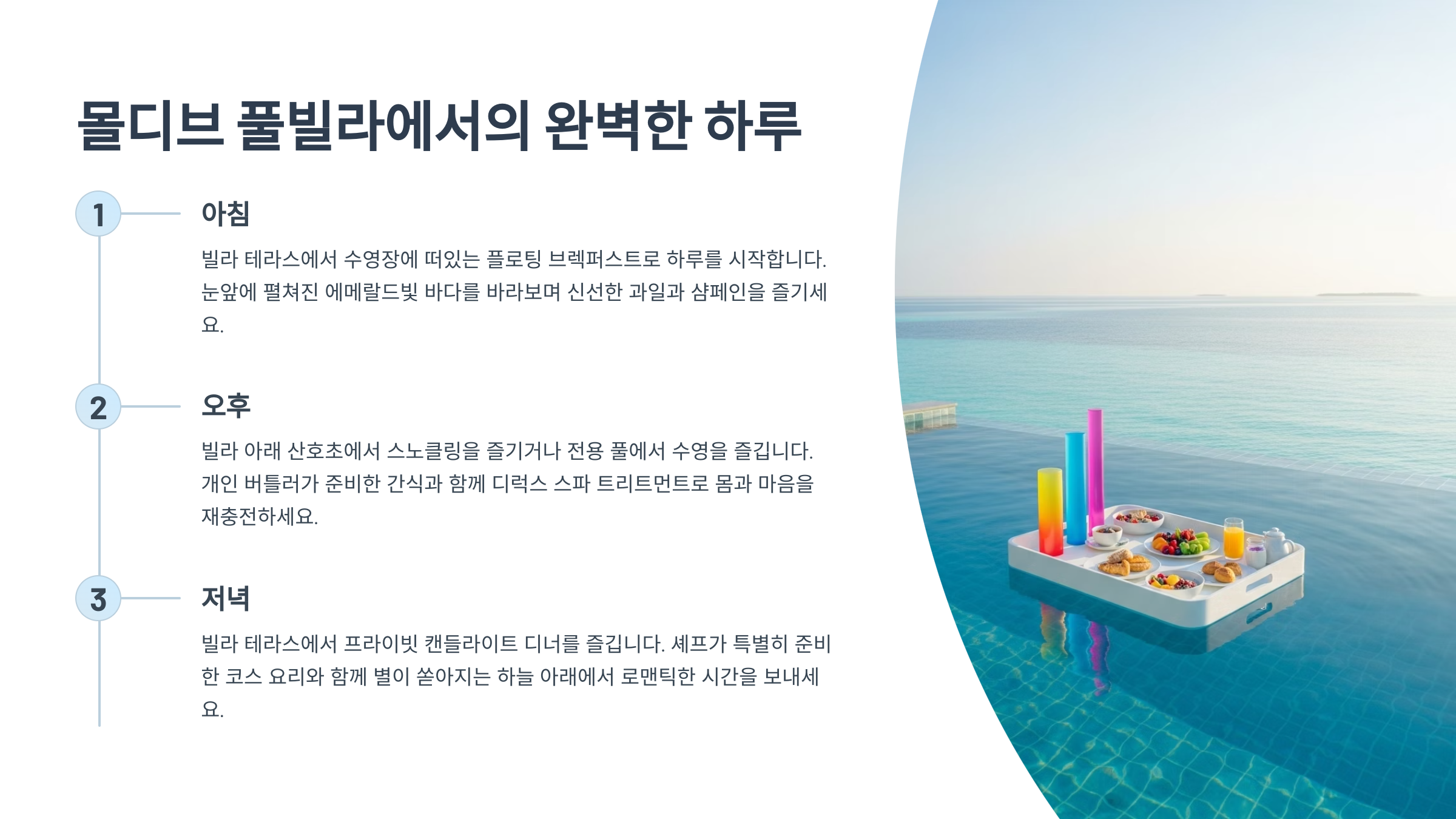 💡 현실 속 동화: 몰디브 풀빌라에서의 완벽한 하루